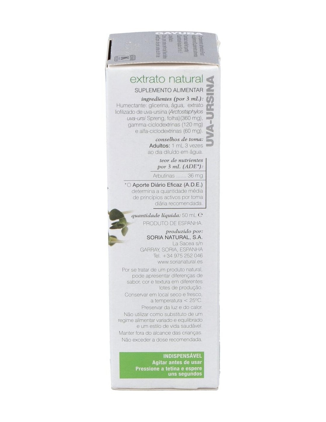 Complemento alimenticio que ayuda al cuerpo a eliminar el exceso de líquido al aumentar la cantidad de orina. Indicada para infecciones de vías urinarias o cistitis. Con propiedades diuréticas, apoyando la función renal y la eliminación de líquidos. Está elaborado a base de extracto liofilizado de Arctostaphylos uva-ursi, procedente de cultivos limpios en los que no se han utilizado abonos inorgánicos, pesticidas ni herbicidas. El extracto de Gayuba de Soria Natural es un complemento alimenticio que ayuda al cuerpo a eliminar el exceso de líquido al aumentar la cantidad de orina.