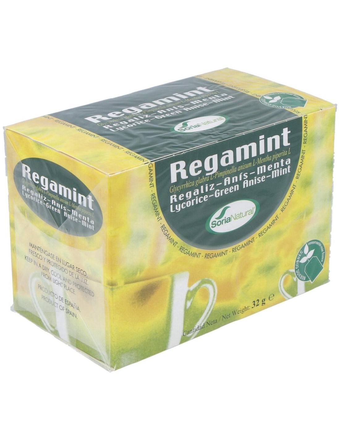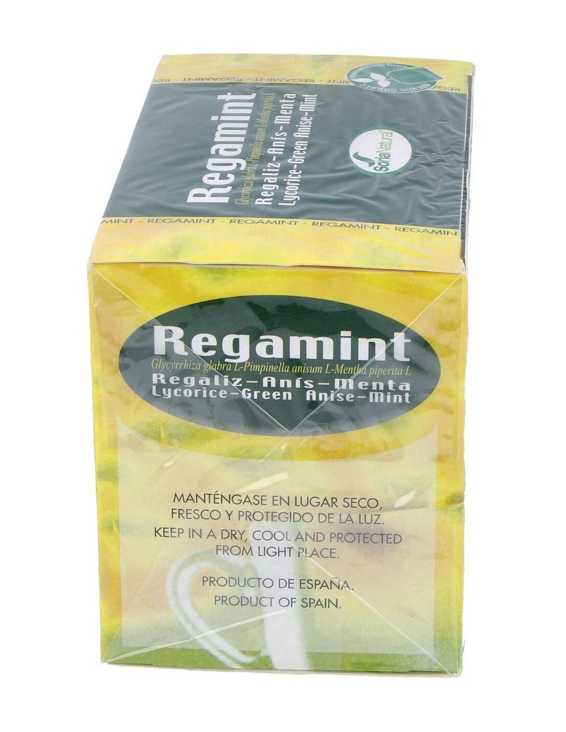 Regamint de Soria Natural es una infusión natural elaborada con Mentha piperita, frutos de Pimpinella anisum L. y raíz de regaliz que ayuda a tratar los problemas digestivos: