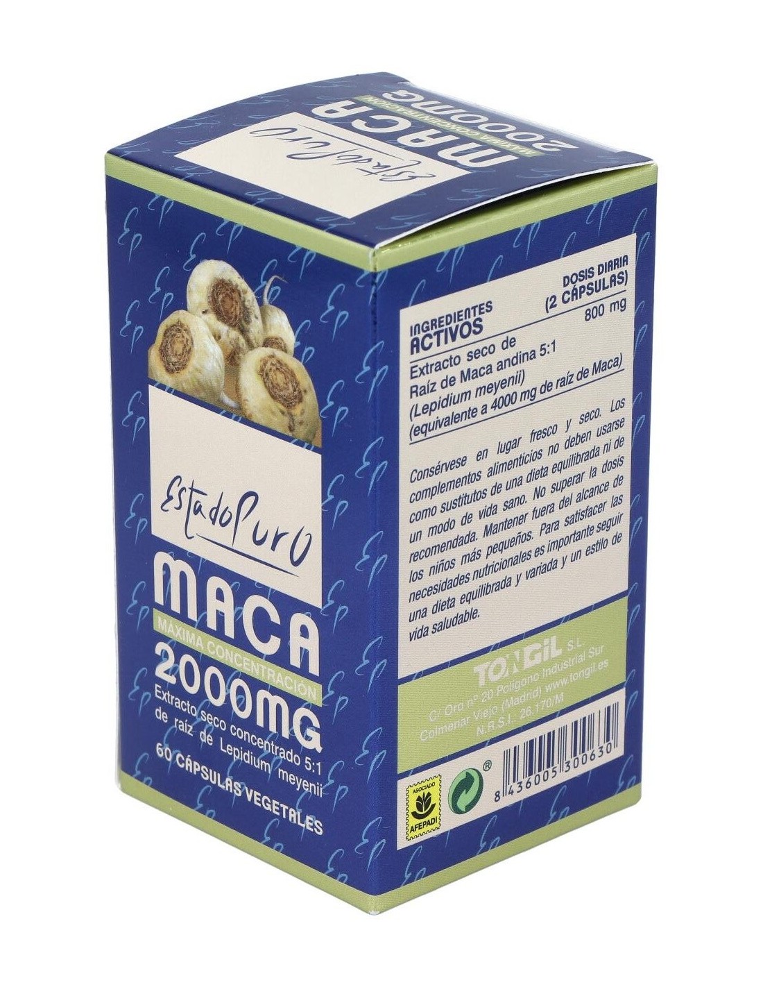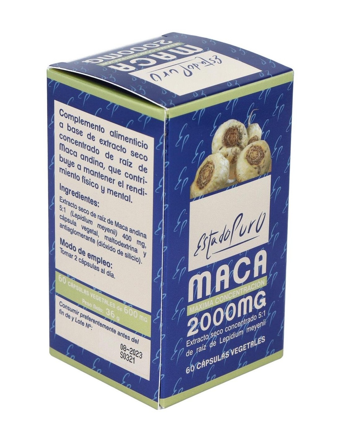 Extracto seco de Raíz de Maca andina (Lepidium meyenii) 5:1 (equivalente a 2000 mg de raíz de Maca)....................400 mg