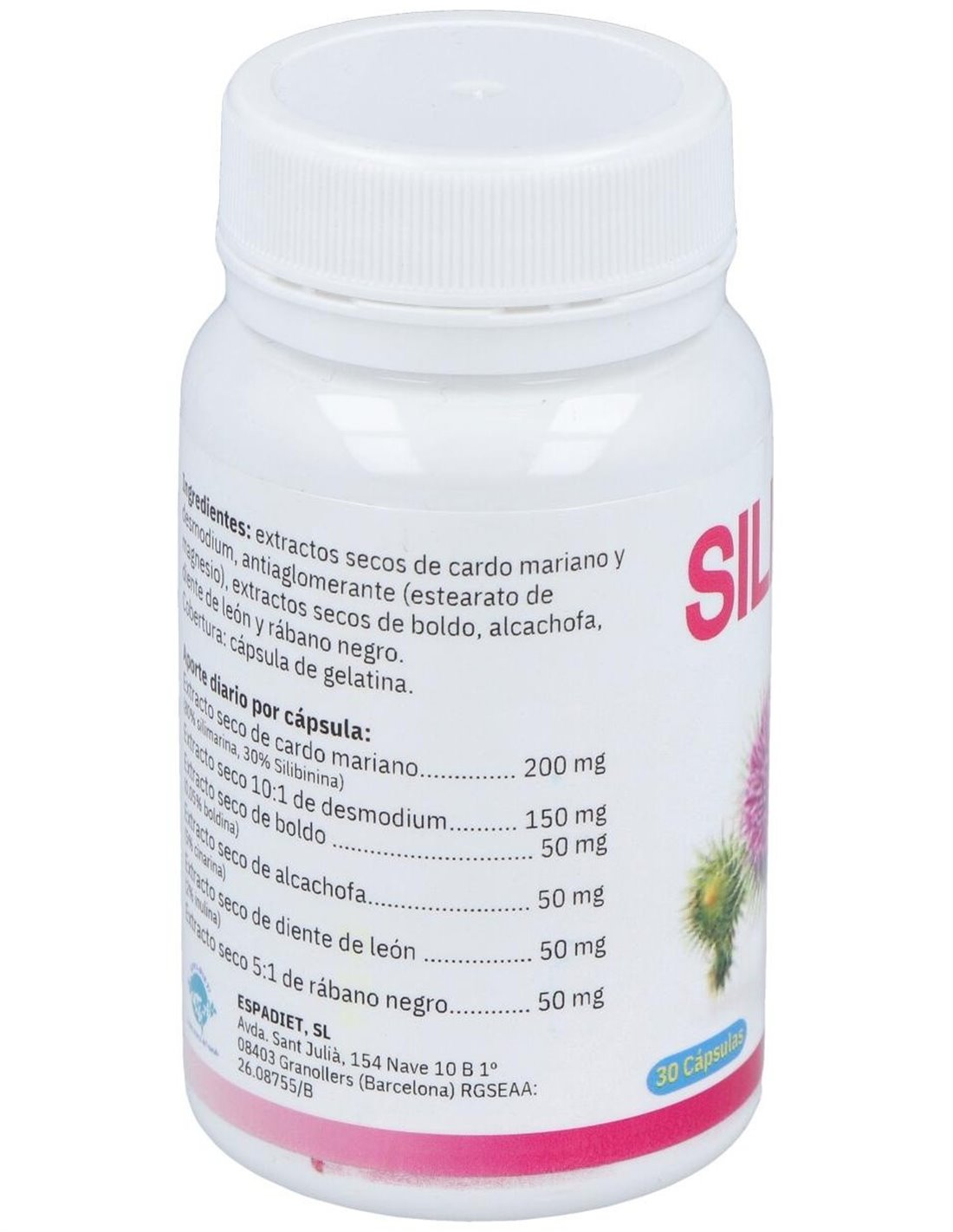 Extracto seco de cardo mariano (80% silimarina, 30% Silibinina)......200 mg