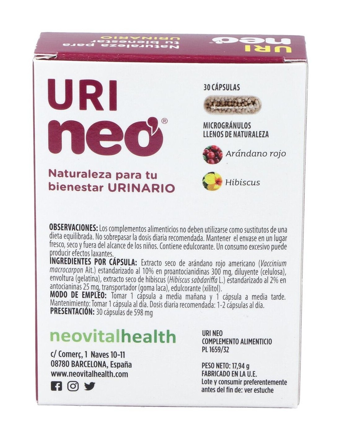 URI-NEO | Uri-Neo® Arándano Rojo 500mg 30cáps
