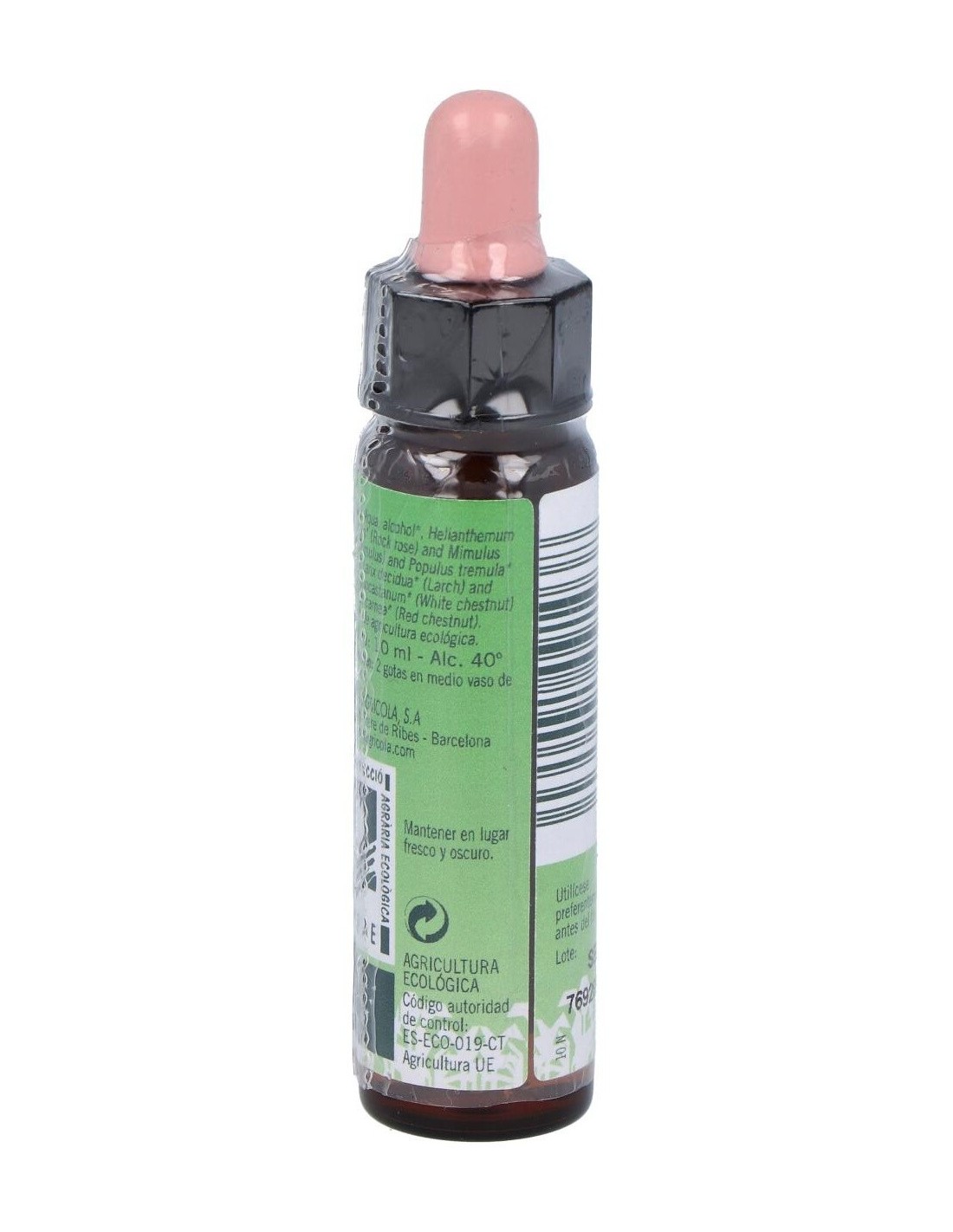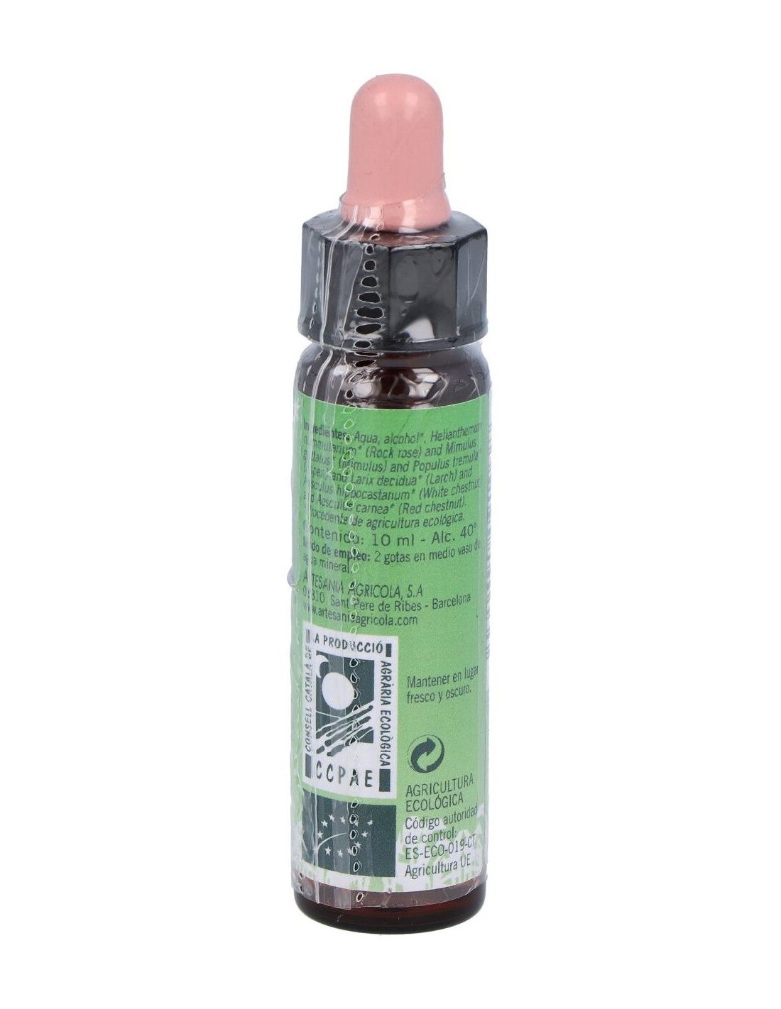 Dilución de maceración acuosa de flores de: Rock Rose, Mimulus, Aspen, Larch, White Chestnut, Cherry Plum, Red Chestnut en alcohol.