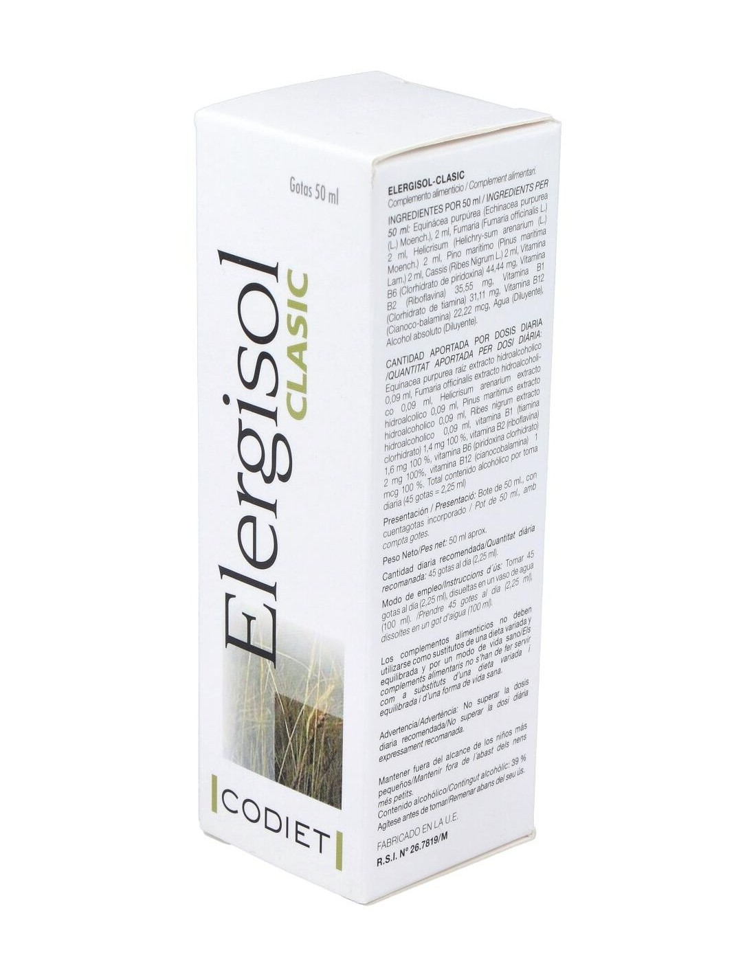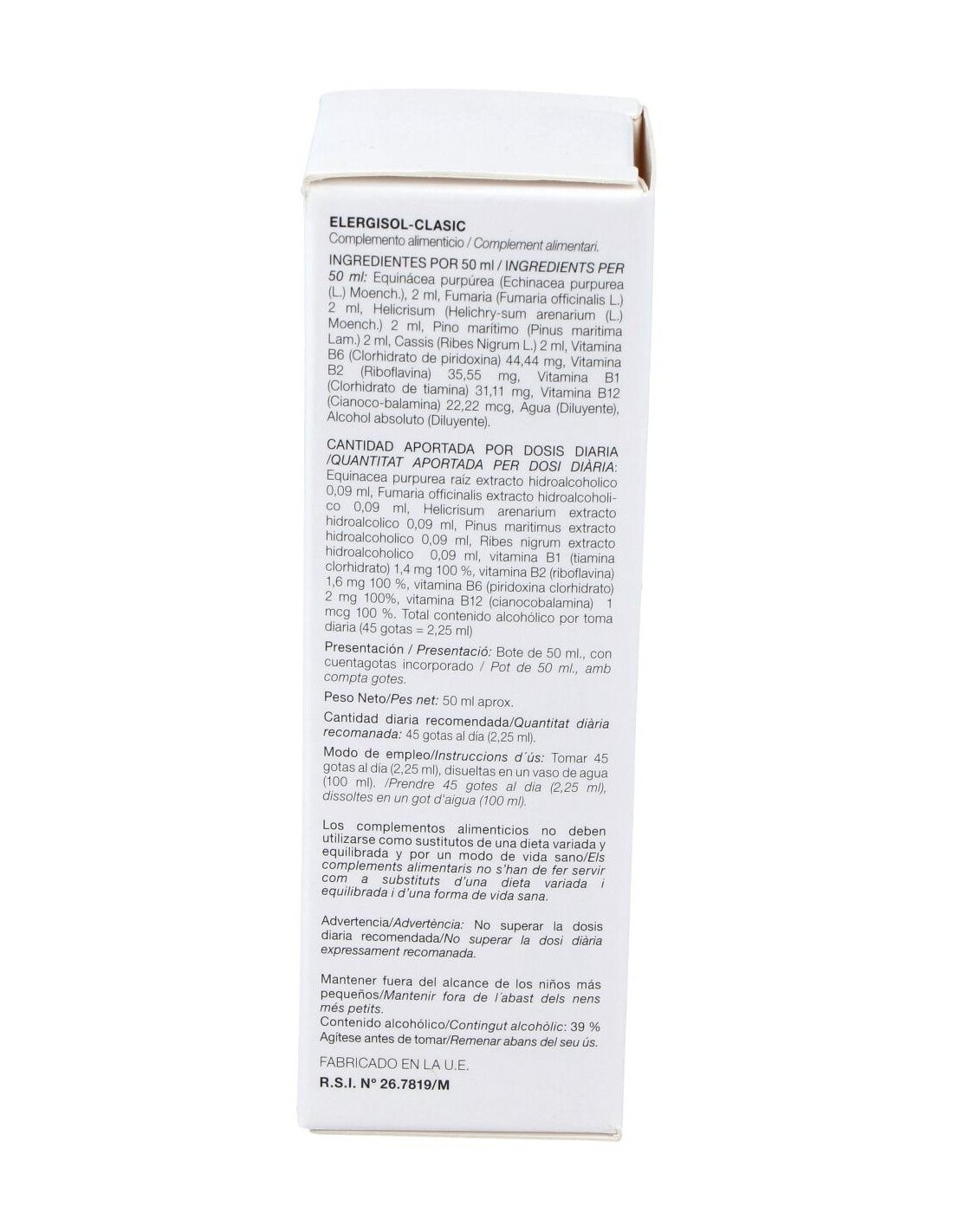 Equinácea (Echinacea Purpurea (L.) Moench. ), Fumaria (Fumaria Officinalis L.), Helichrysum (Helichrysum Arenarium (L.) Moench. ), Pino Marítimo (Pinus Maritima Lam. ), Cassis (Ribes Nigrum L.), Vitamina B6 (Clorhidrato De Piridoxina), Vitamina B2 (Riboflavina), Vitamina B1 (Clorhidrato De Tiamina), Vitamina B12 (Cianocobalamina), Agua (Diluyente), Alcohol Absoluto (Diluyente).