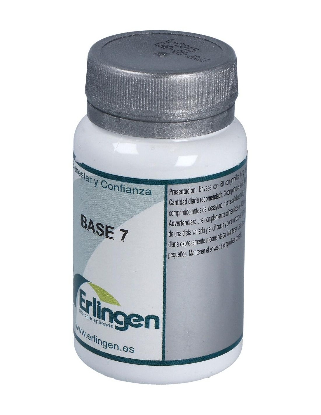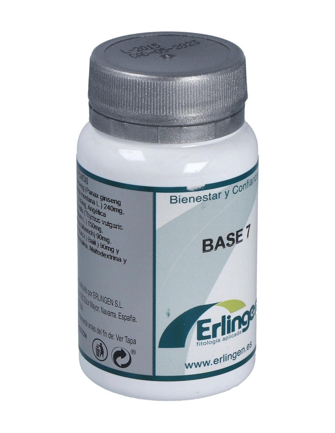 Erlingen Base 07 60comp es un complemento alimenticio a base de extractos de plantas con propiedades adaptógenas (Ginseng y Schisandra) y antisépticas de las vías respiratorias (romero, tomillo, orégano...) de soporte en caso de estados de baja energía o convalecencia.