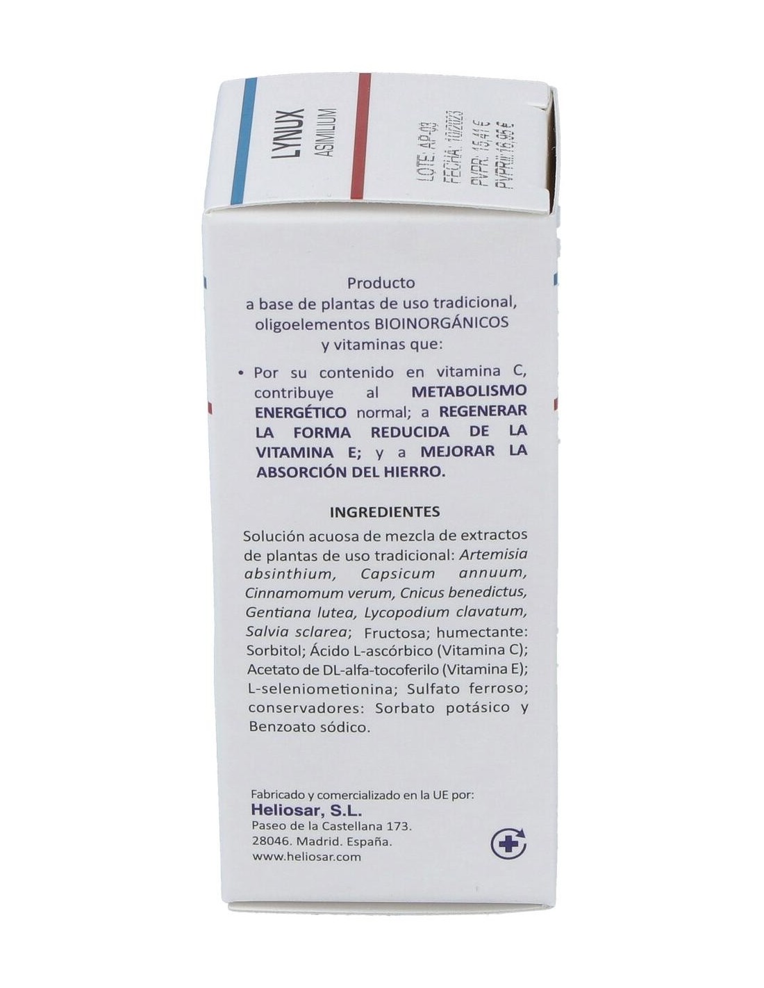 Agua, fructosa, humectante, sorbitol E-420, artemisa absinthium, capsicum annuun, cinnamomun verum, cnicus benedictus, gentiana lutea, lycopodium clavatum, salvia sclarea, ácido l-ascórbico (vitamina C), acetato de dl-alfa- tocoferilo (vitamina E), sulfato ferroso, selenito de sodio, conservadores: sorbato potásico (E-202) y benzoato sódico (E-211).