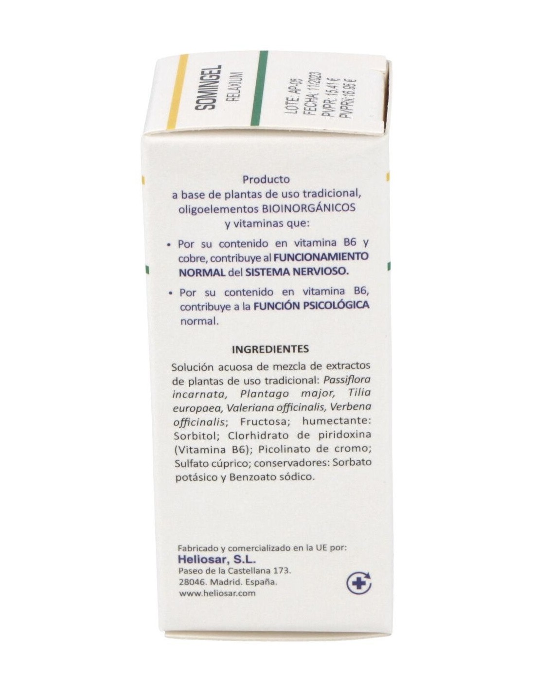 Complemento alimenticio Heliosar. Brinda la cantidad necesaria de vitamina B6 al organismo. Esta contribuye a que funcione correctamente el metabolismo energético, el sistema nervioso y el sistema inmunitario. También es esencial para una buena función psicológica. Es importante en el mantenimiento del tejido conectivo del cuerpo y en el transporte normal del hierro para todo el organismo. Proporciona cromo, que contribuye al metabolismo normal de los macronutrientes.
