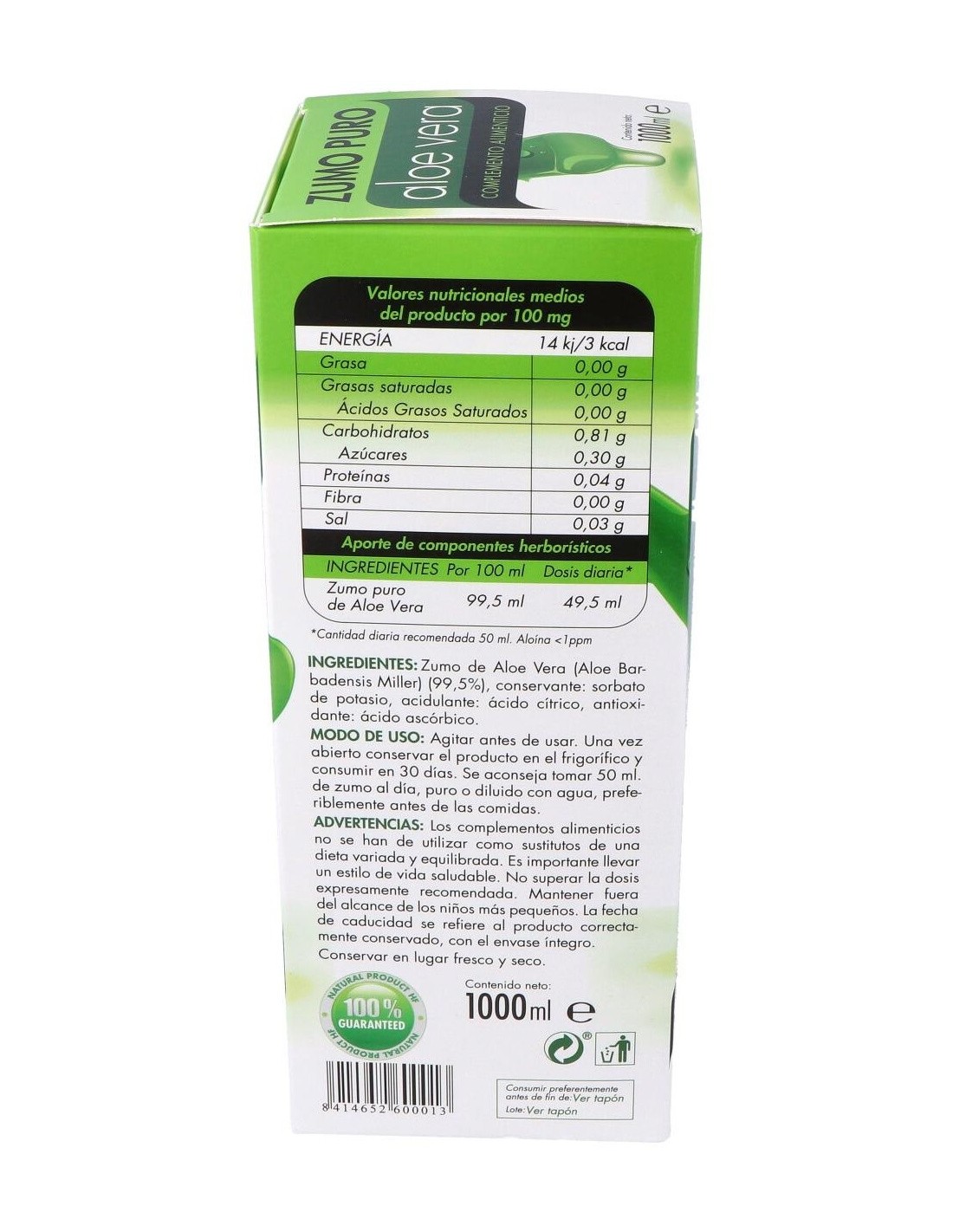 Zumo Puro Aloe Vera 1Litro de Hf Natural Care