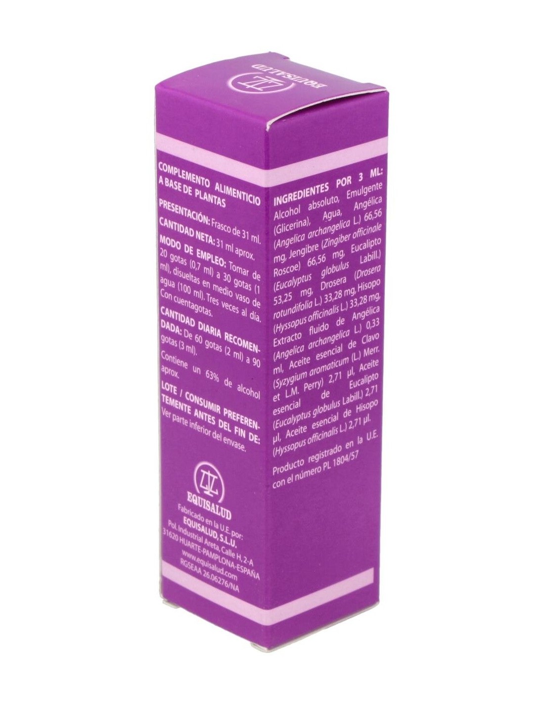 ANGELICA, JENGIBRE, EUCALIPTO, DROSERA, HISOPO, EXTRACTO FLUIDO DE ANGELICA, ACEITE ESENCIAL DE CLAVO, ACEITE ESENCIAL DE EUCALIPTO, ACEITE ESENCIAL DE HISOPO.