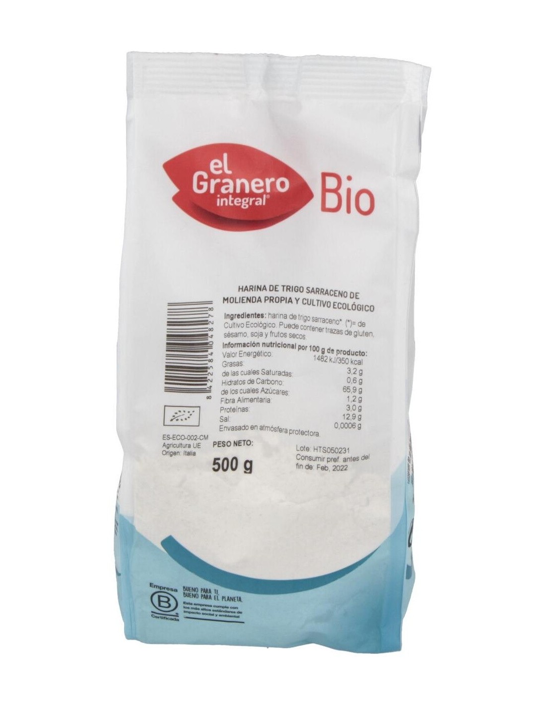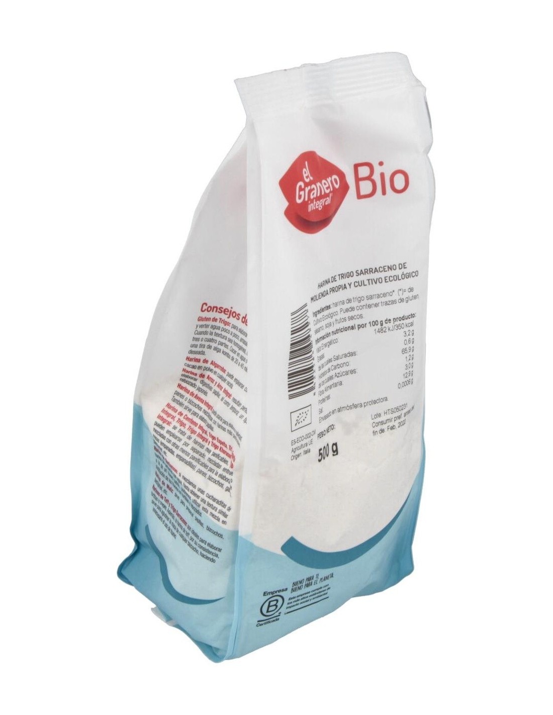 Harina Integral De Trigo Sarraceno*. Puede Contener Trazas De Gluten, Sésamo, Soja Y Frutos De Cáscara. (*)=De Cultivo Ecológico.Conservación: