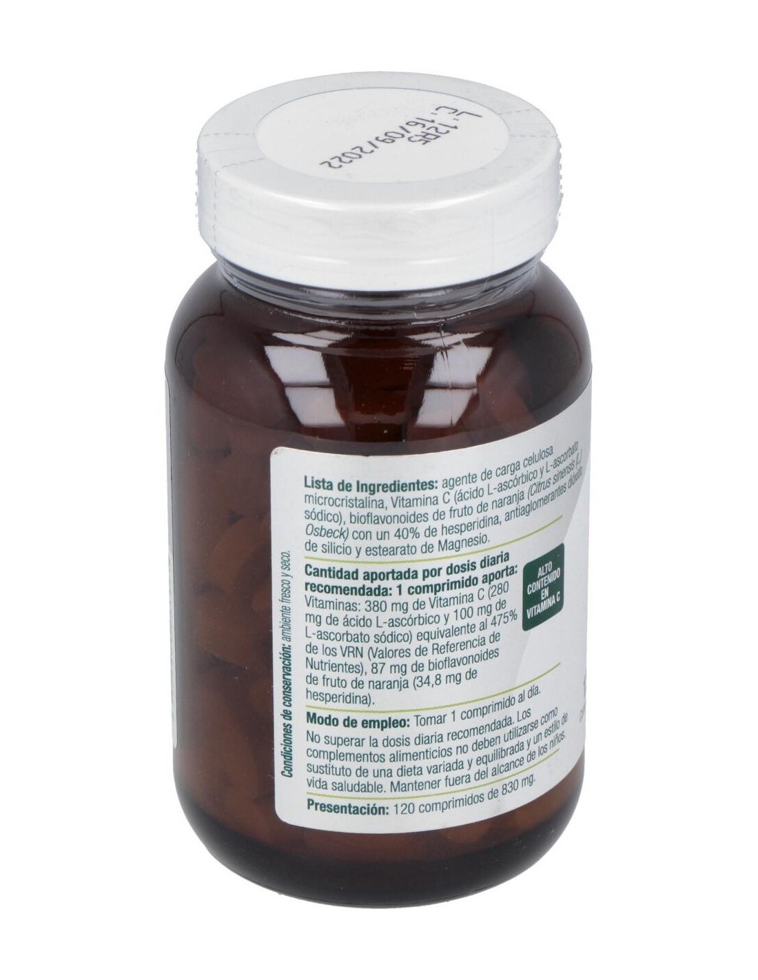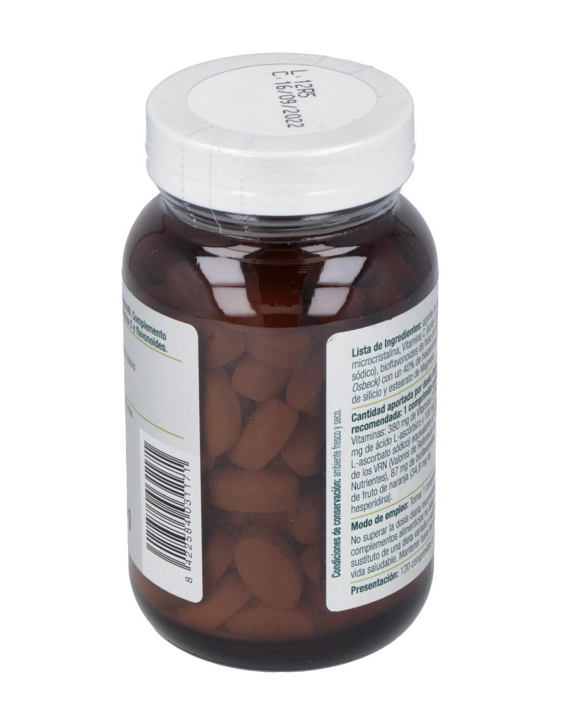 Por 1 comprimido: Bioflavonoides (40 %), Vitamina C / Ácido Ascórbico, Dióxido de Silicio, Estearato de magnesio, Celulosa microcristalina, Vitamina C, Extracto de magnesio, Bioflavonoides de fruto de naranja.