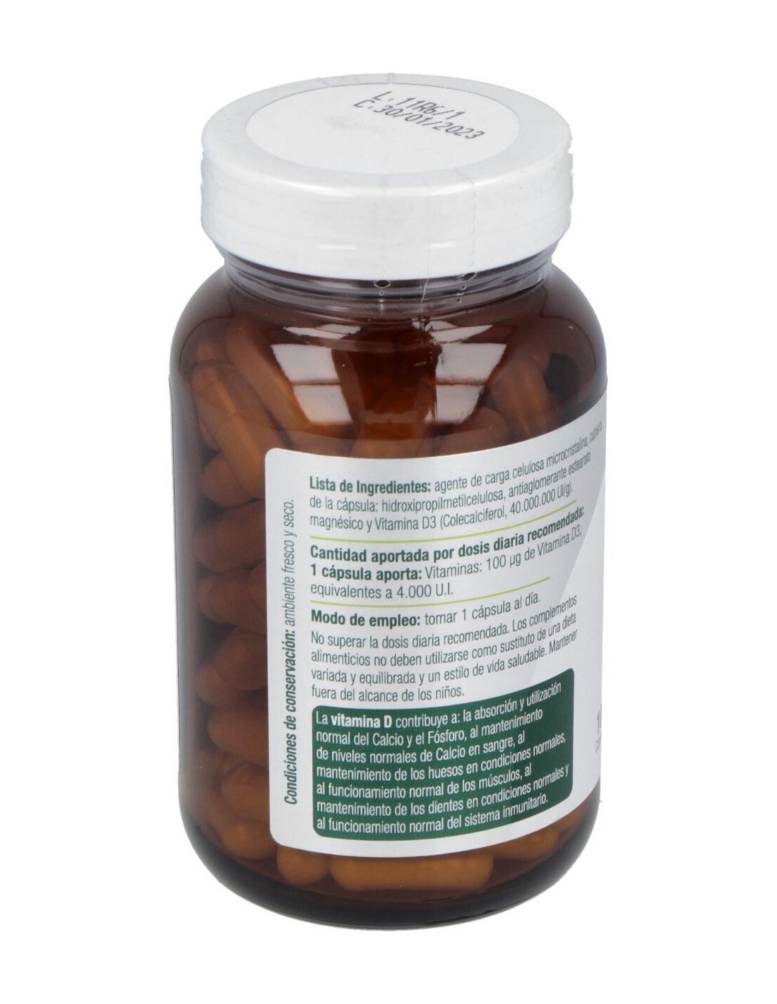 Por 1 cápsula: Vitamina D3 (4e+07 UI), Vitamina D3 / Colecalciferol (4e+06 UI), Estearato de magnesio, Hidroxipropilmetilcelulosa.