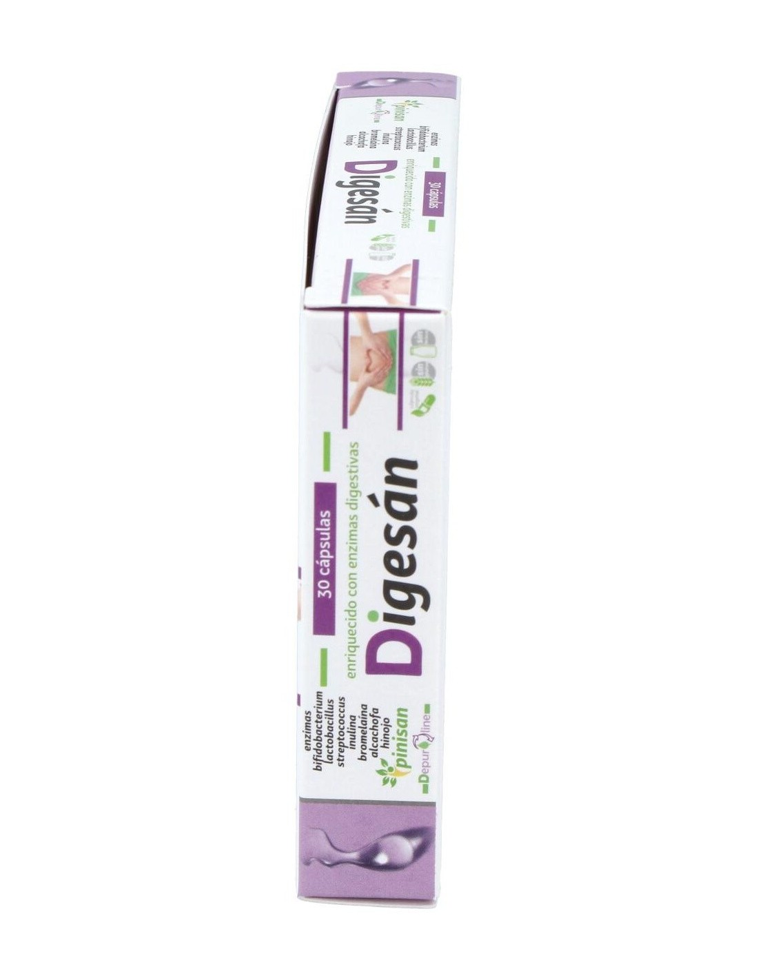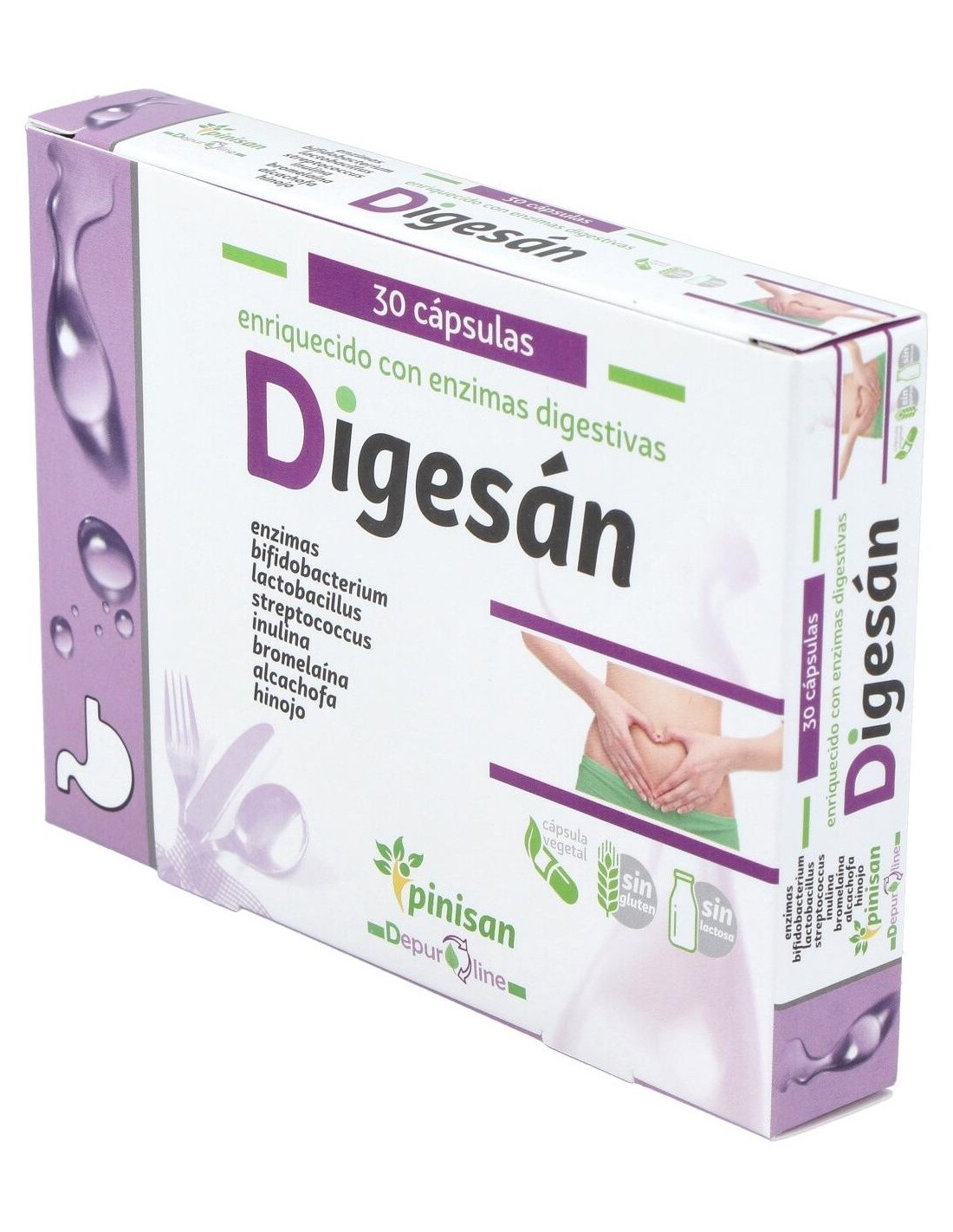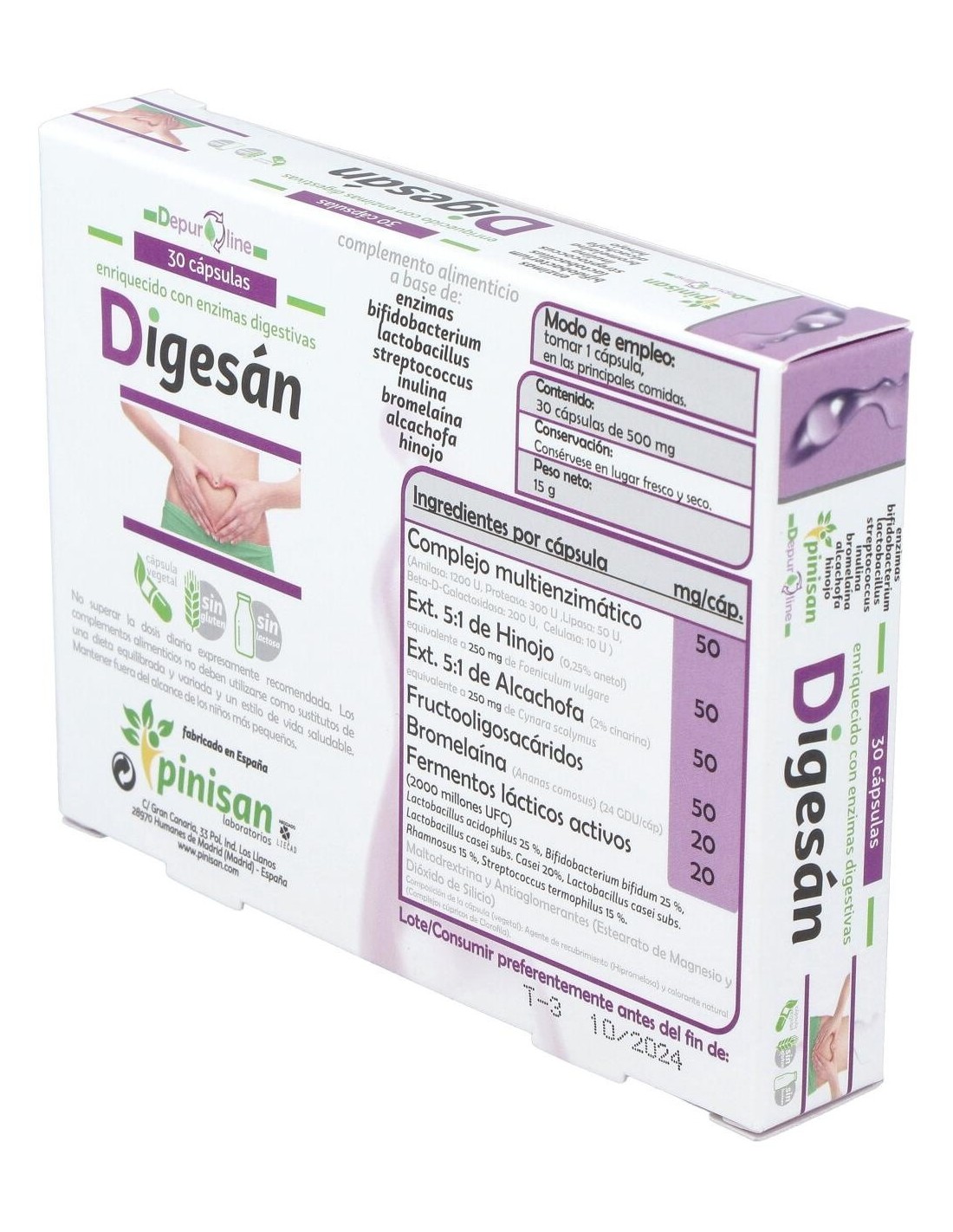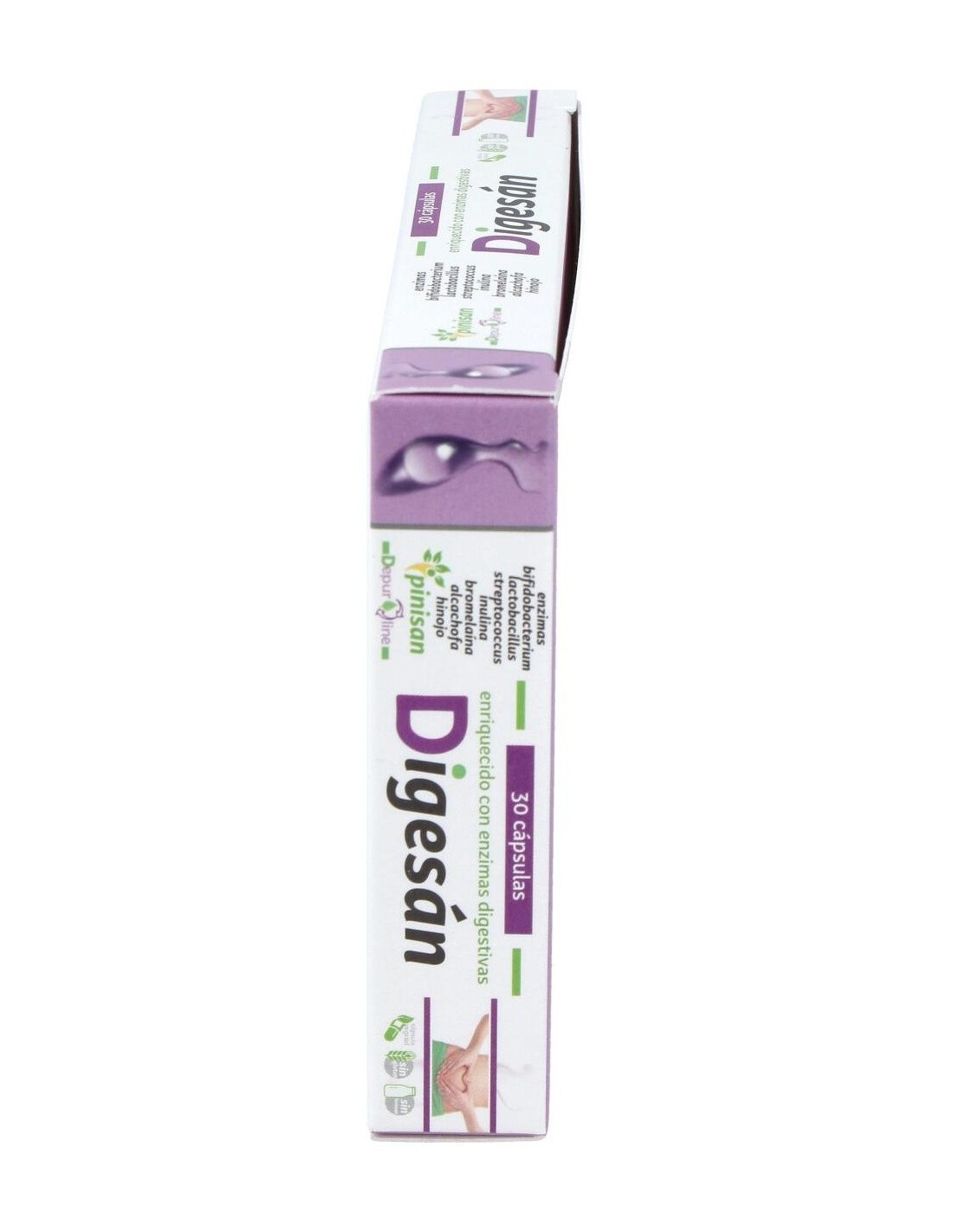Pinisan Digesan es un complemento alimenticio que contribuye a la digestión normal gracias a su fórmula con alcachofa, hinojo, probióticos, bromelaína, inulina y enzimas digestivas.