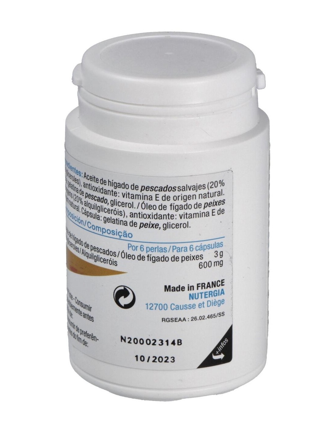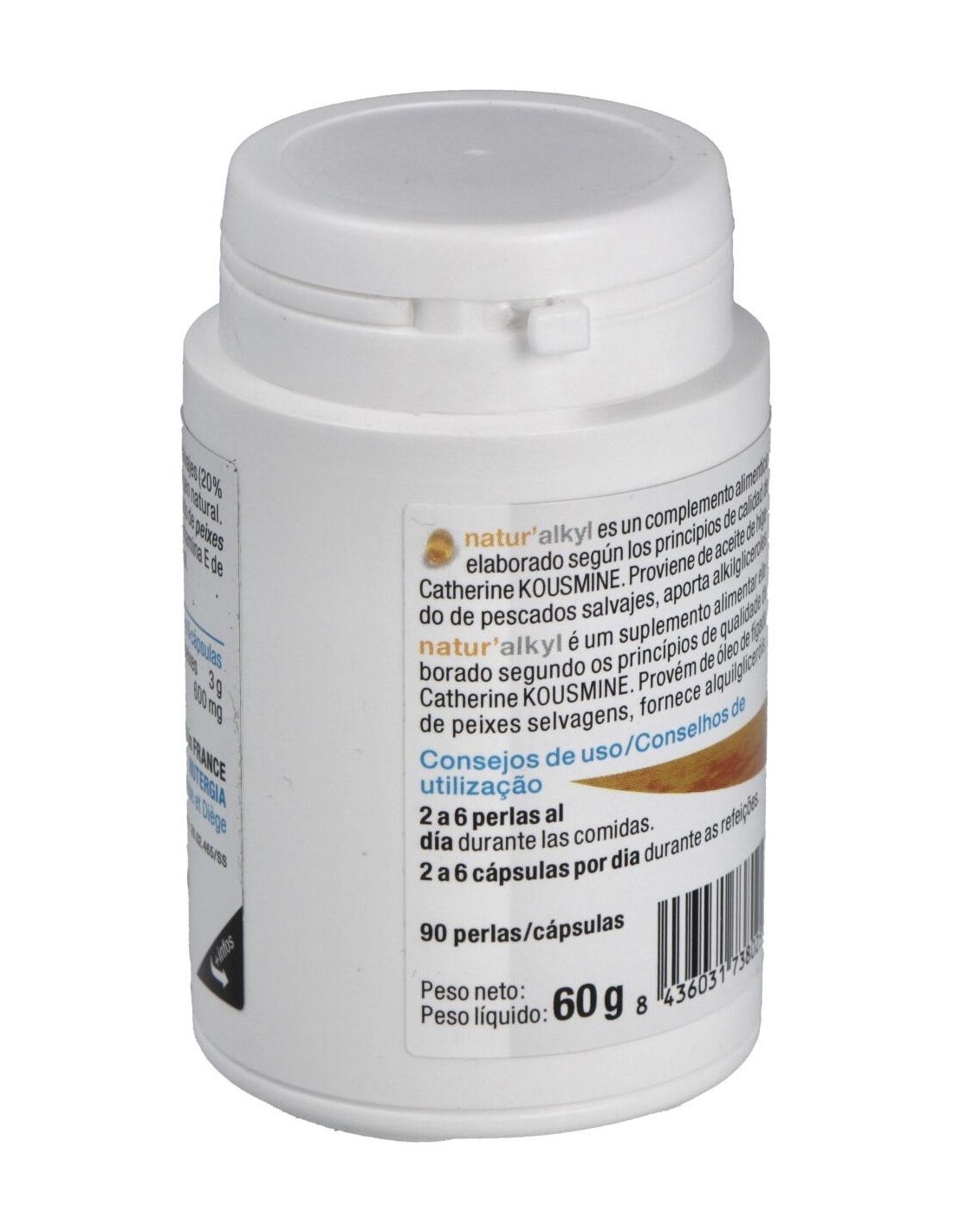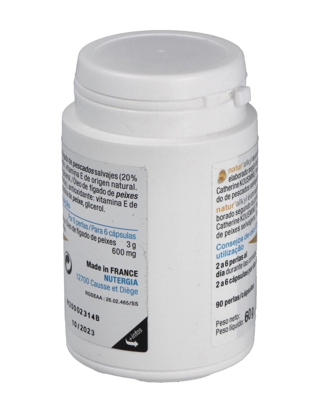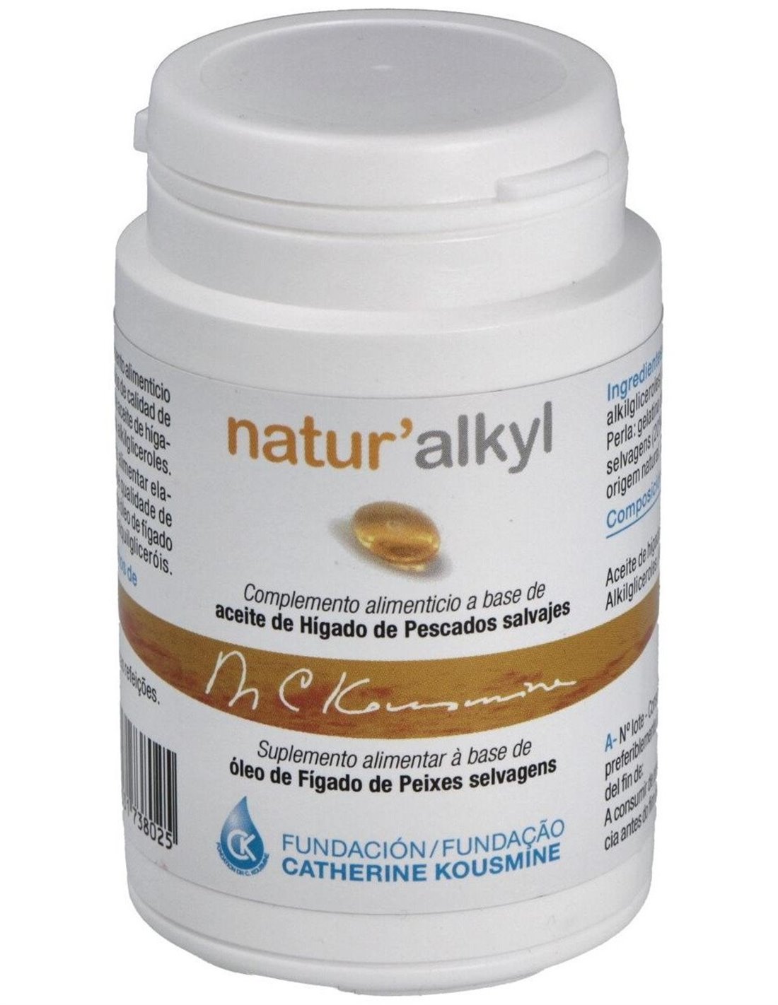 Aceite de hígados de pescados de alta concentración en alkilgliceroles (500 mg), Alkilgliceroles (50 %), Ácido oleico (35 %), Ácidos grasos (11 %).