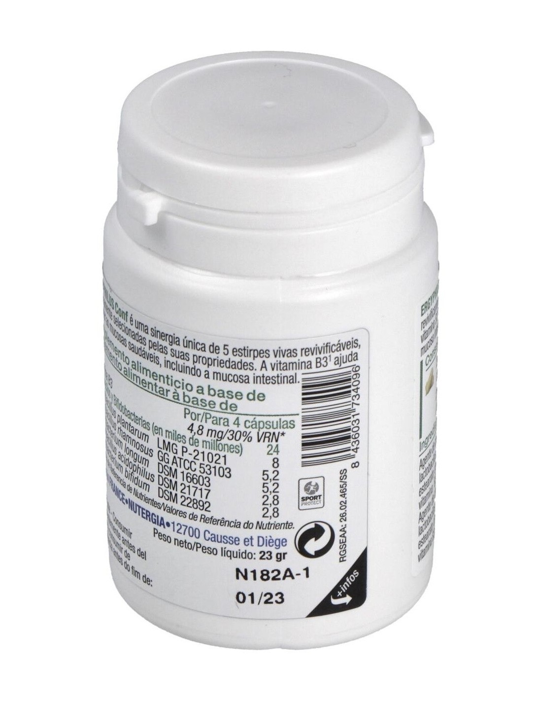 4 cápsulas contienen 24.000 miles de millones de gérmenes revivificantes protegidos por una matriz polisacarídica.