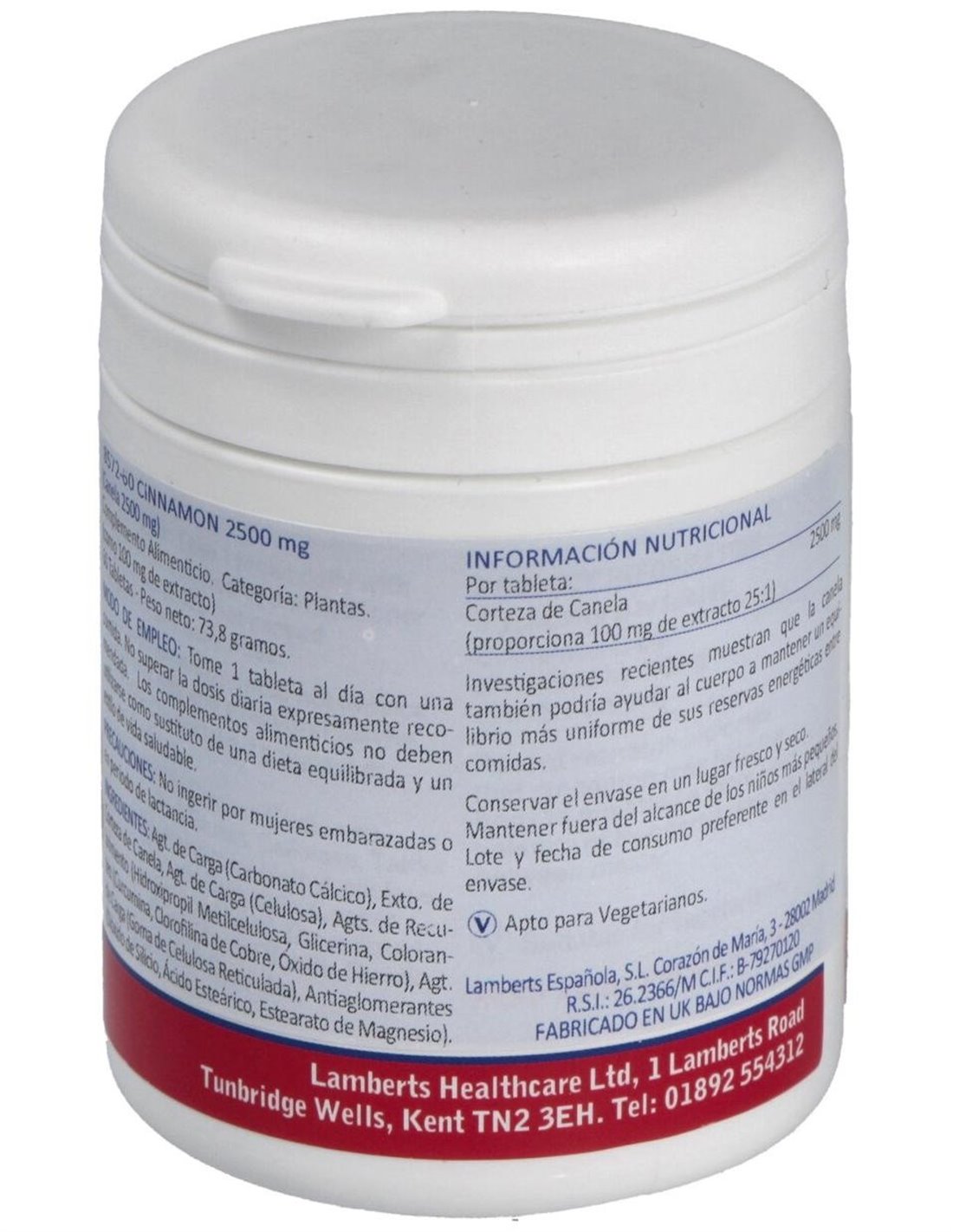 Canela 2500 mg (Cinamaldehído del 62% 73%) de Lamberts