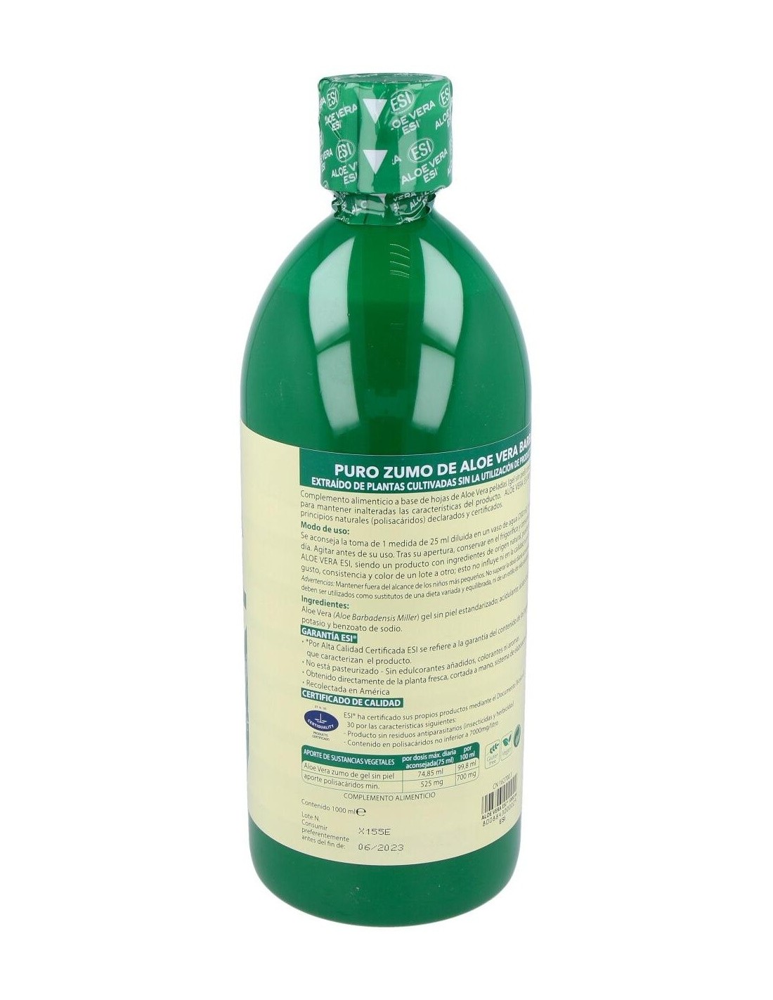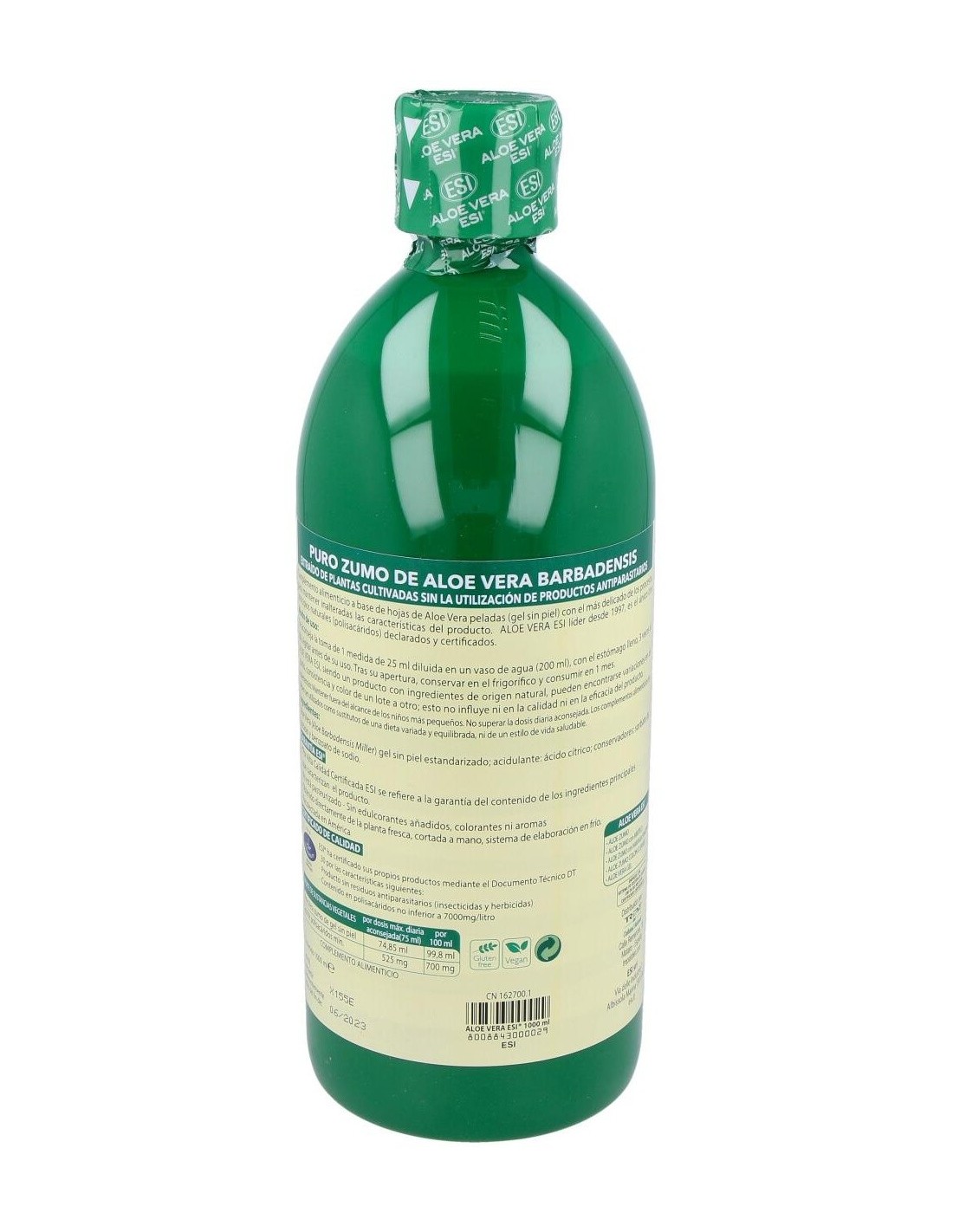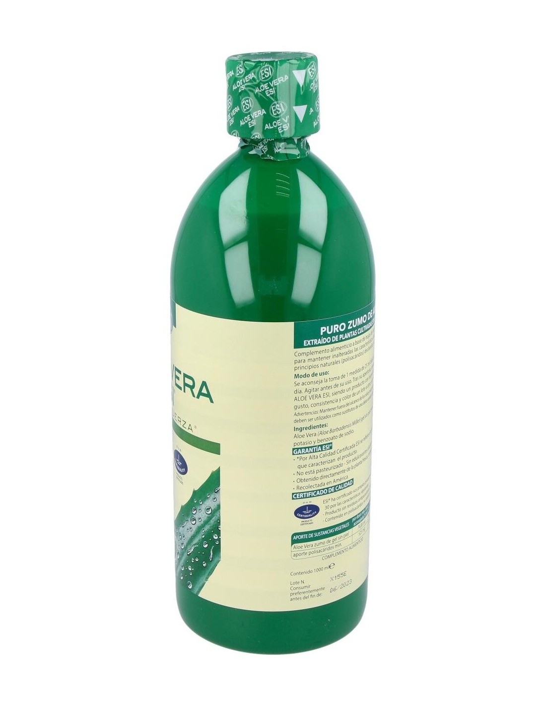 ESI zumo de aloe vera es una combinación única de la hoja entera y el gel contenidos en el aloe vera, de modo que este preparado adquiera todas las propiedades que ofrece este activo vegetal.