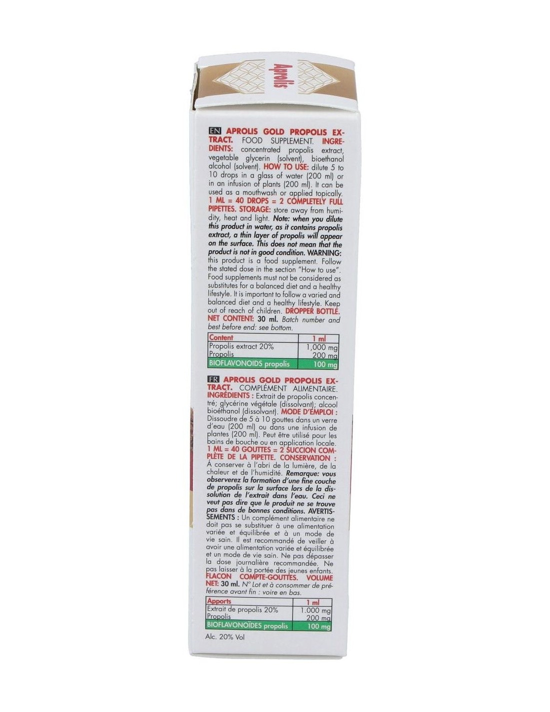 Extracto de propóleo al 20%.