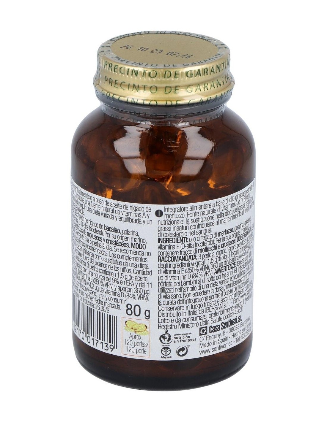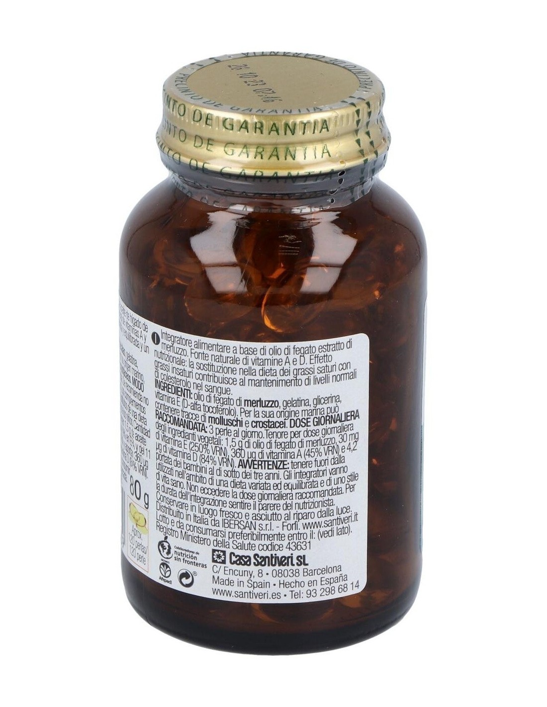 Complemento alimenticio a base de aceite de hígado de bacalao, que constituye una fuente natural de vitaminas A y D.