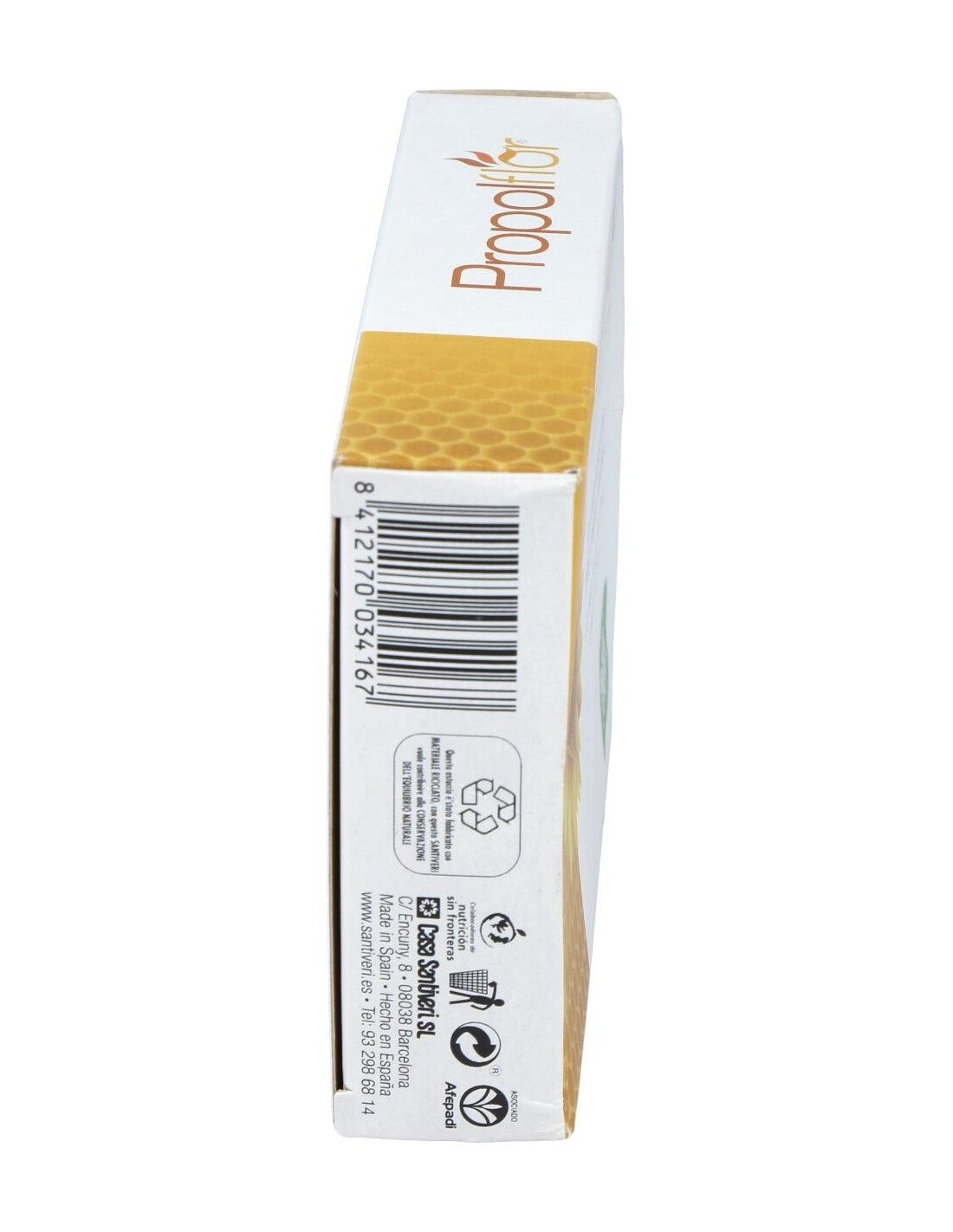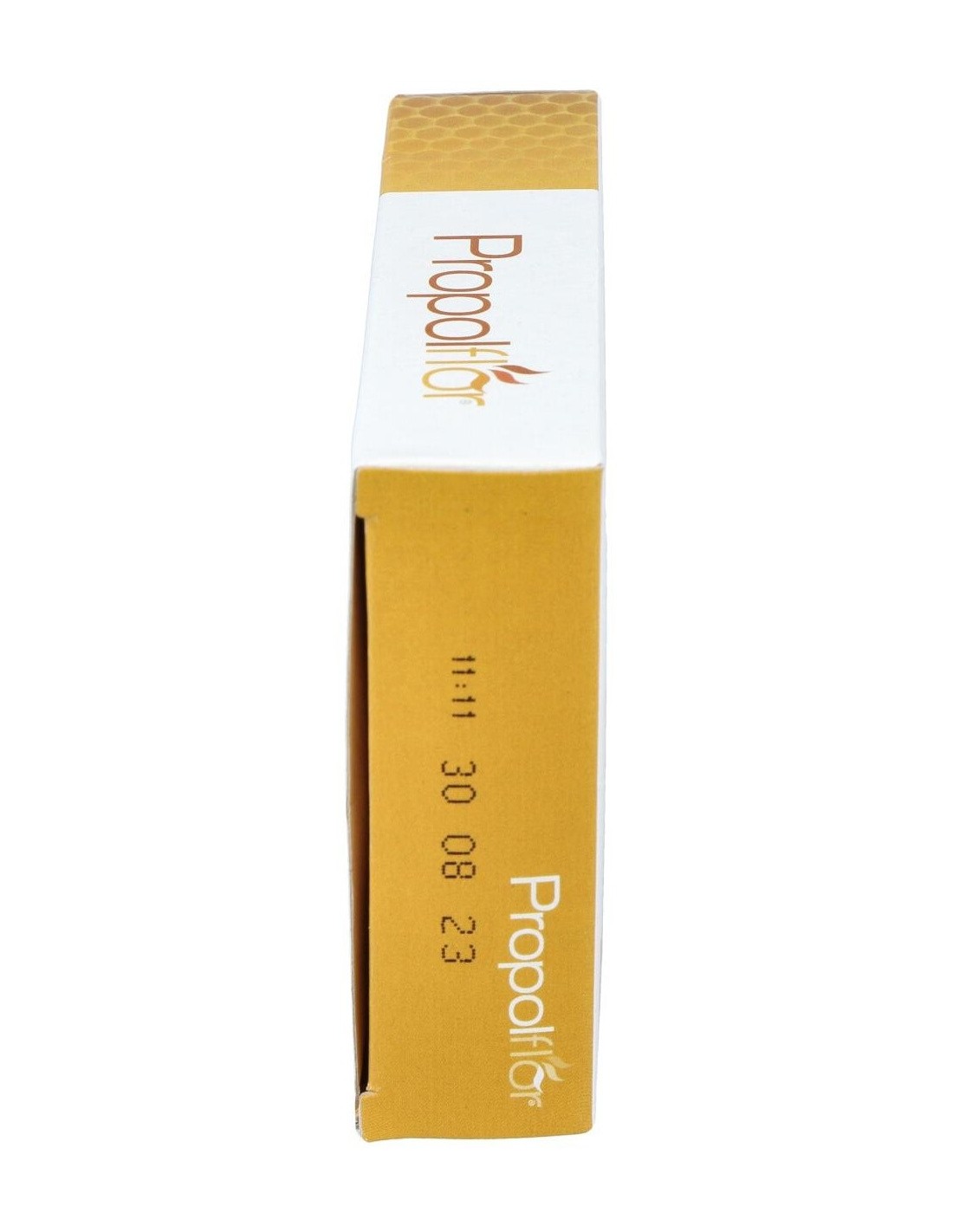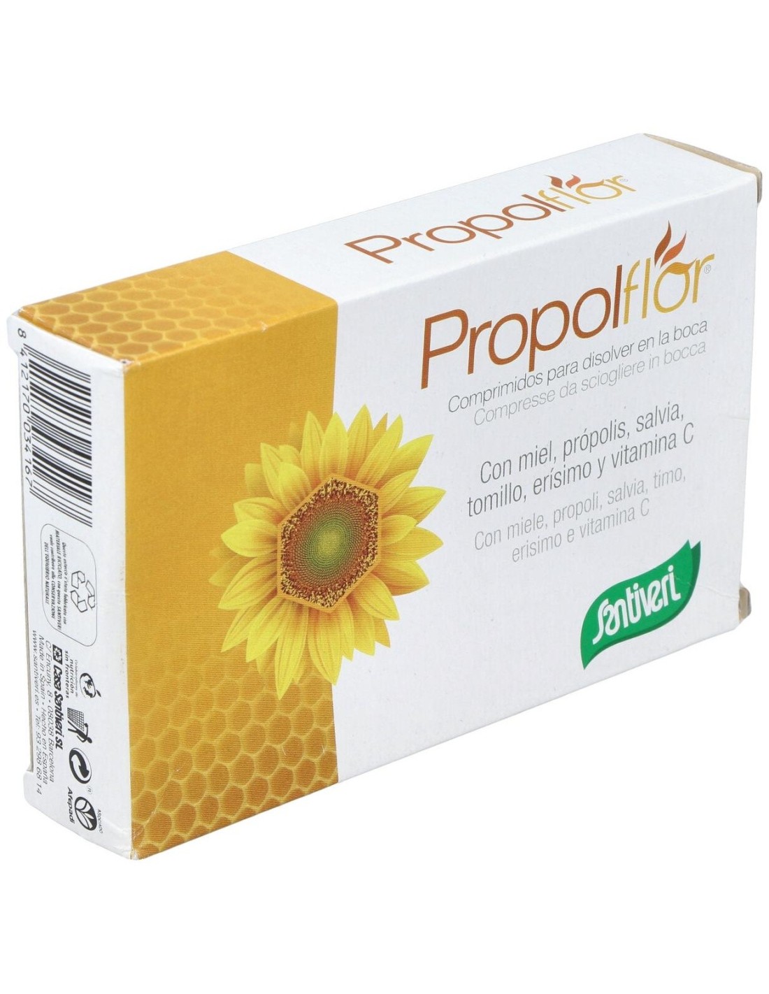 530 mg de miel, 160 mg de extracto de própolis (9,6 mg de galangina), 20 mg de vitamina C de origen natural (25 % VRN), 100 mg de extracto de salvia, 100 mg de extracto de tomillo y 100 mg de extracto de erísimo-hierba de los cantores.