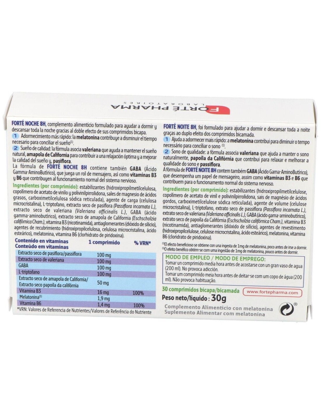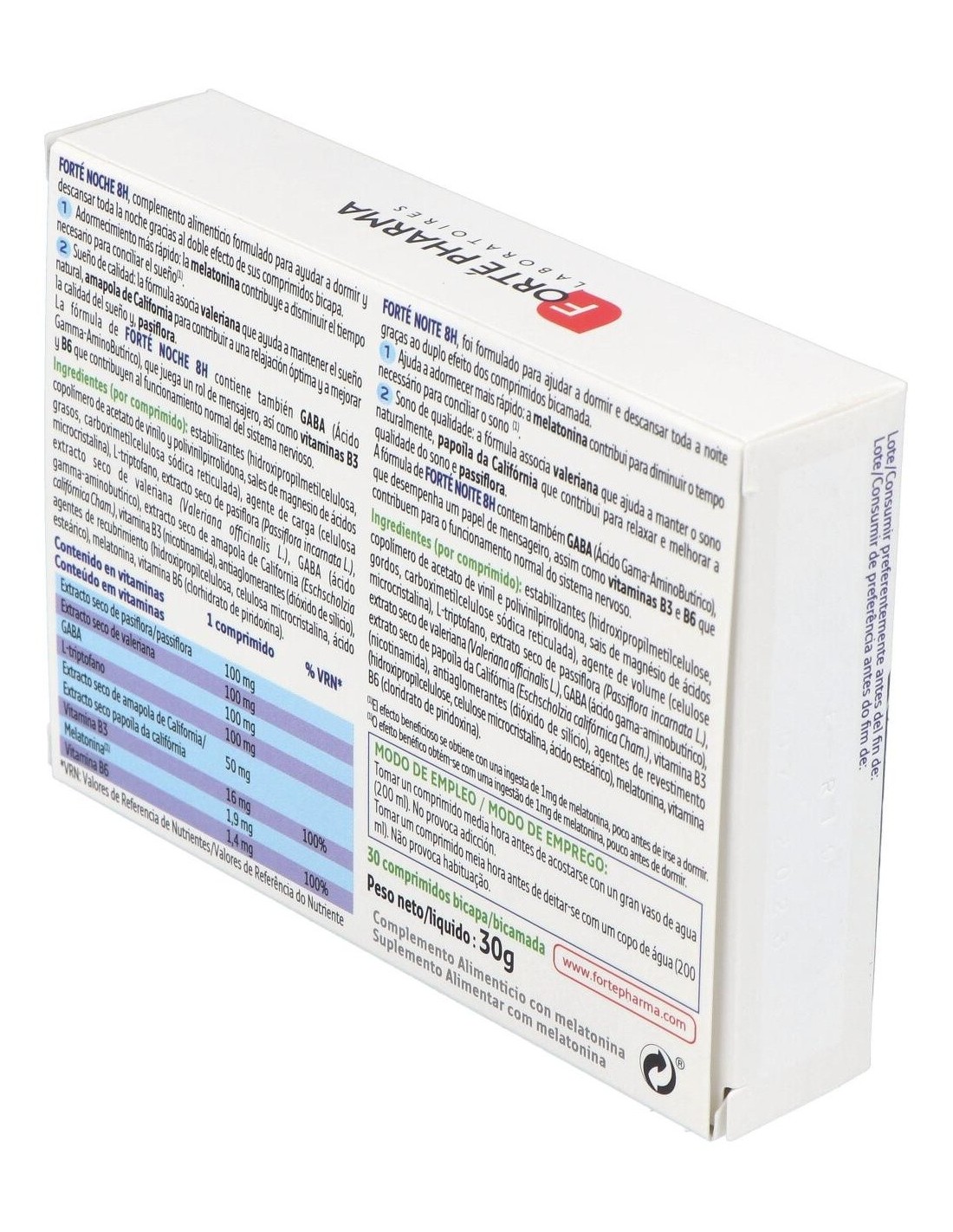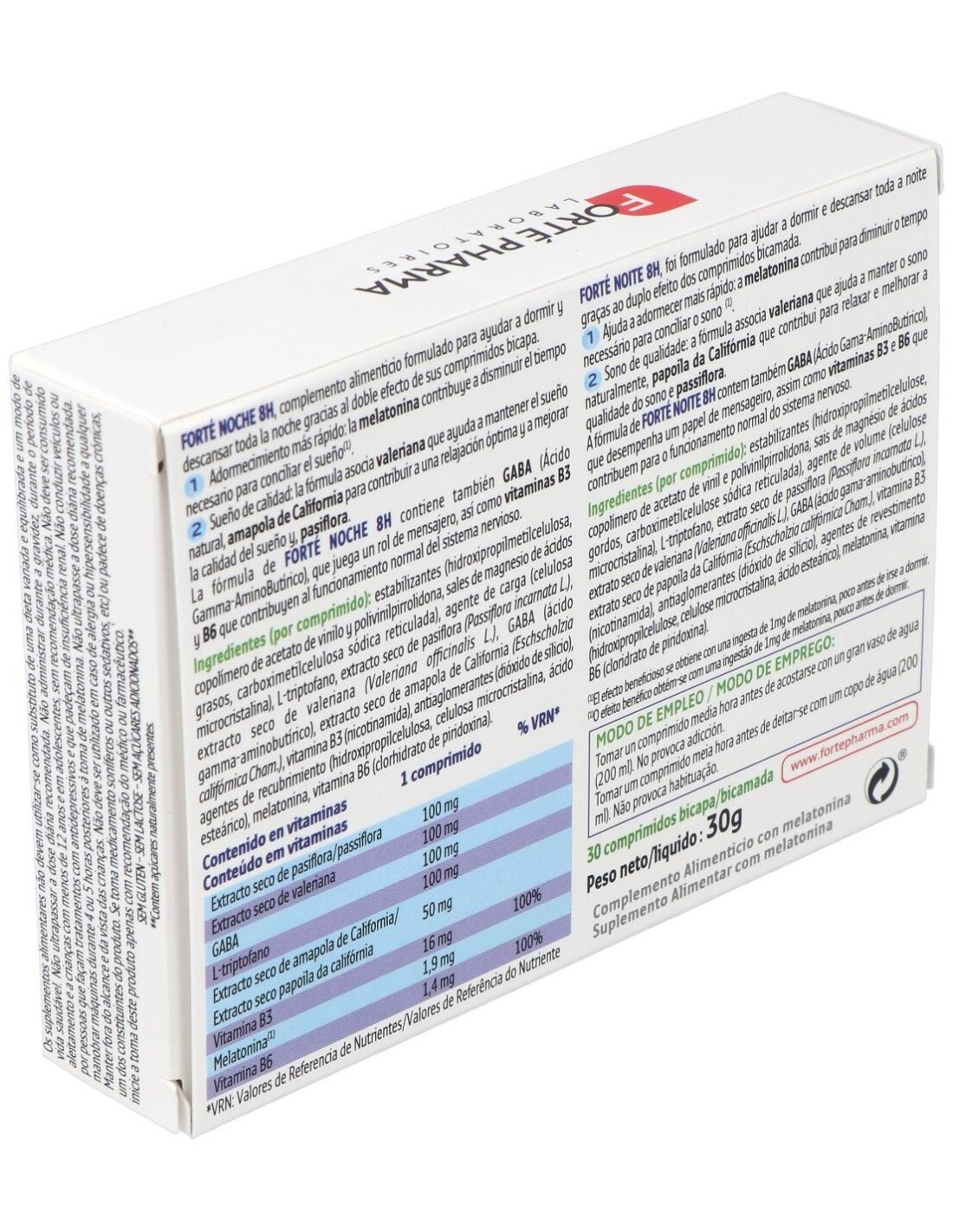 Solución natural para dormir y descansar toda la noche. Esta fórmula en comprimidos bicapa actúa en dos fases: un efecto inmediato para un adormecimiento más rápido gracias a una dosis óptima de 1,9 mg de melatonina y un efecto prolongado para un sueño de calidad gracias a la asociación sinérgica de activos reconocidos por su acción sobre el sueño: valeriana, pasiflora, amapola de California, GABA, vitaminas B3 y B6.