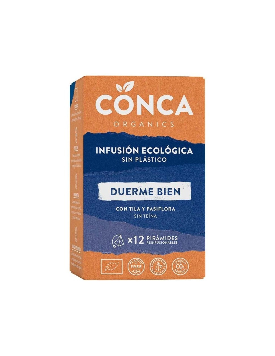 CONCA ORGANICSAromática mezcla de plantas con propiedades relajantes como la tila y pasiflora. Pirámides reinfusionables. Sin teína. Caja de cartón reciclado y bolsa 100% compostable.