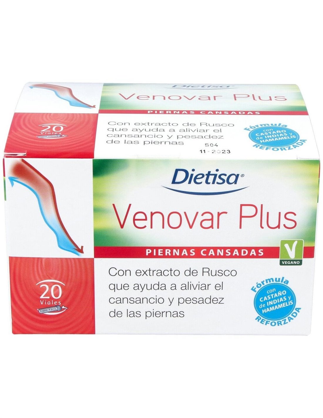 Complemento alimenticio líquido a base de Arándano, Rusco, Saúco, Castaño de Indias, Hamamelis, Bioflavonoides de Cítricos y vitaminas. El extracto de Rusco puede ser útil en caso de cansancio y pesadez de las piernas.