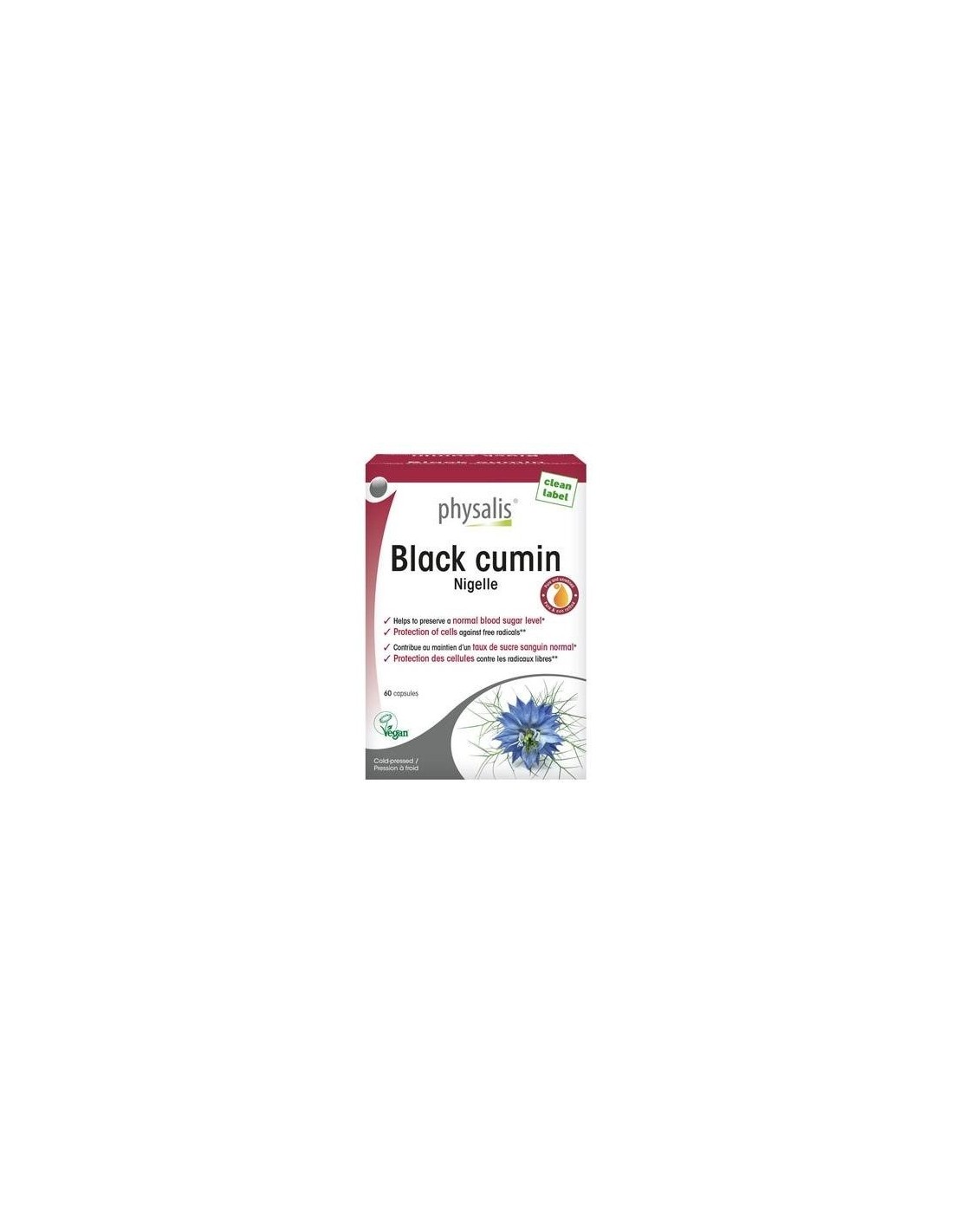 Physalis Black cumin contiene 750 mg de aceite orgánico de alta calidad extraído de las semillas del comino negro (Nigella sativa) cultivadas en Egipto. Este aceite herbal se obtiene por prensado en frío. Debido a que este proceso no implica calor, el aceite retiene todas sus componentes beneficiosos. El aceite de comino negro es excepcionalmente rico en componentes activos. Entre otros, contiene timoquinona, aceites esenciales, esteroles y alcaloides. En particular, tiene concentraciones significativas de ácidos grasos omega-6 (ácido linoleico) y omega-9 (ácido oleico). El alto nivel de estos ácidos, junto con cantidades sustanciales de antioxidantes naturales, como la vitamina E liposoluble, hacen de este un aceite interesante para el organismo. La vitamina E contribuye a la protección de las células contra el estrés oxidativo. Producto vegano.