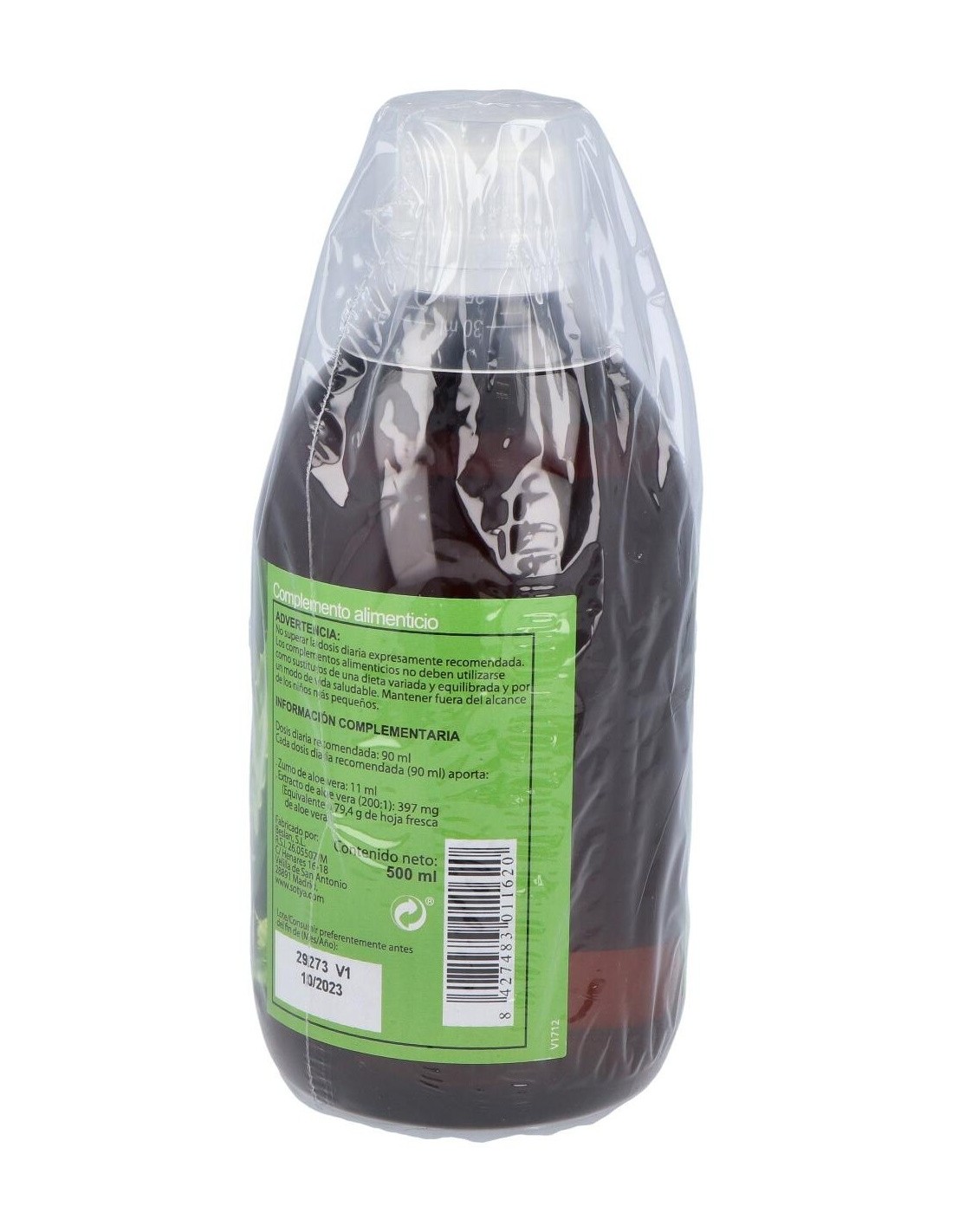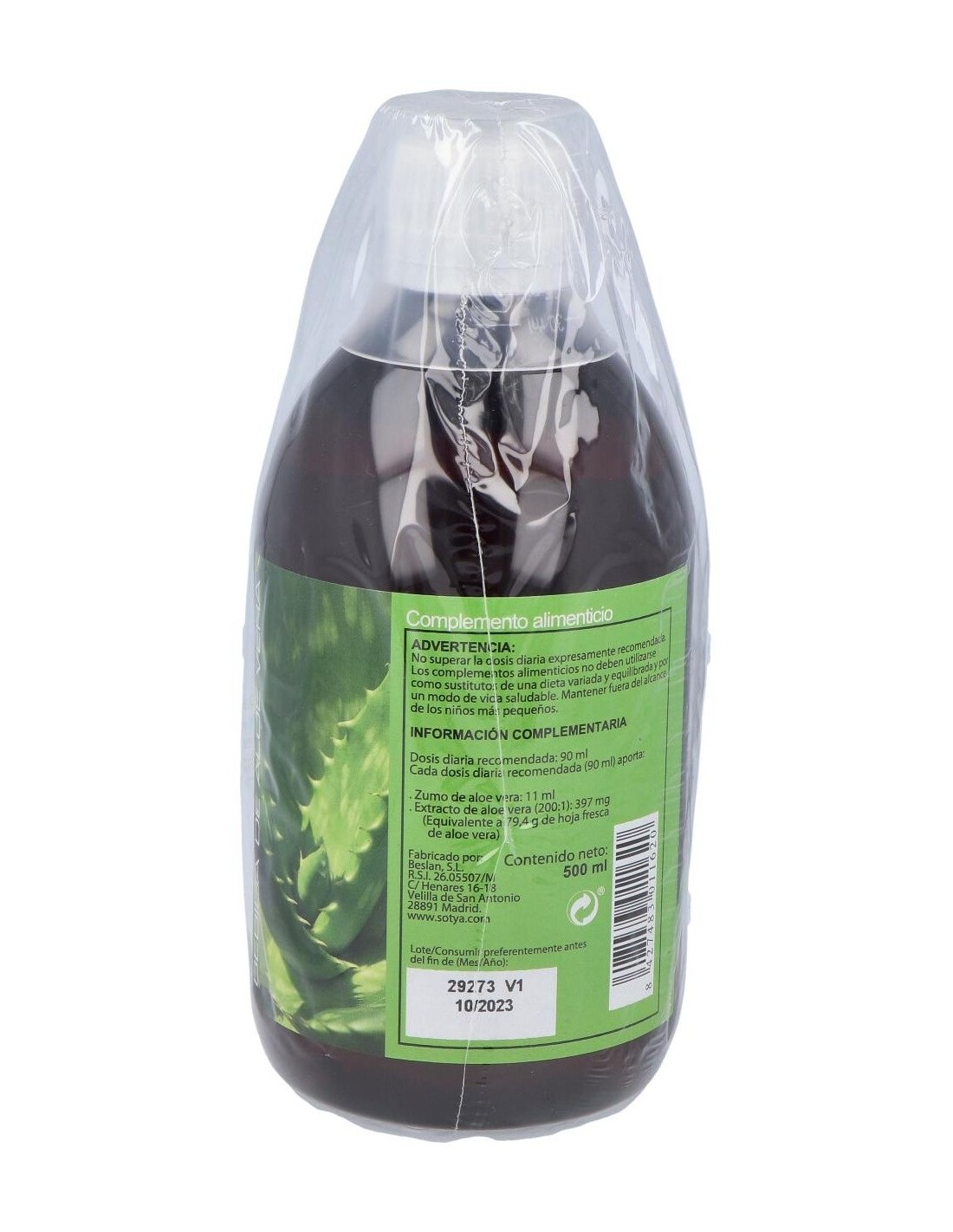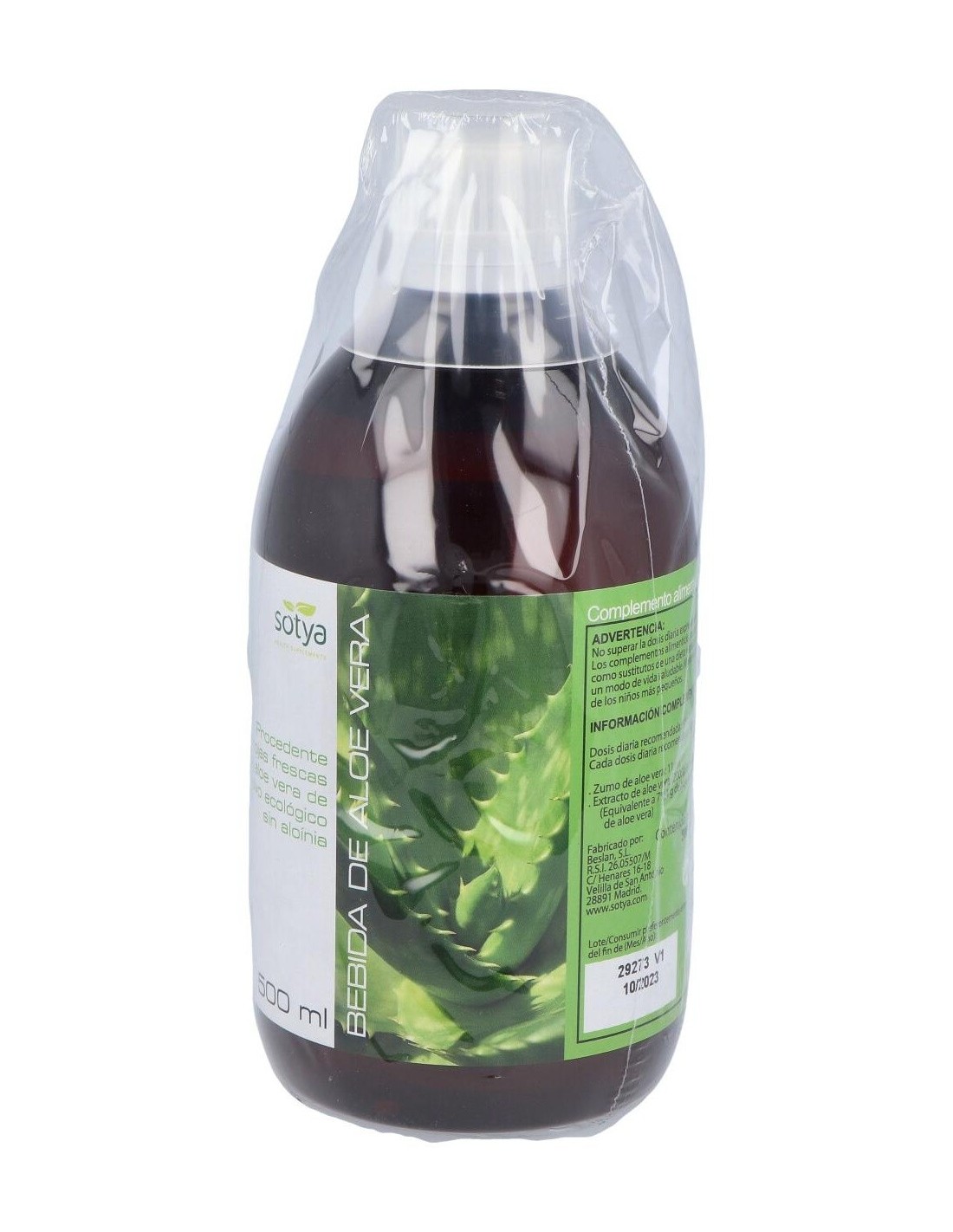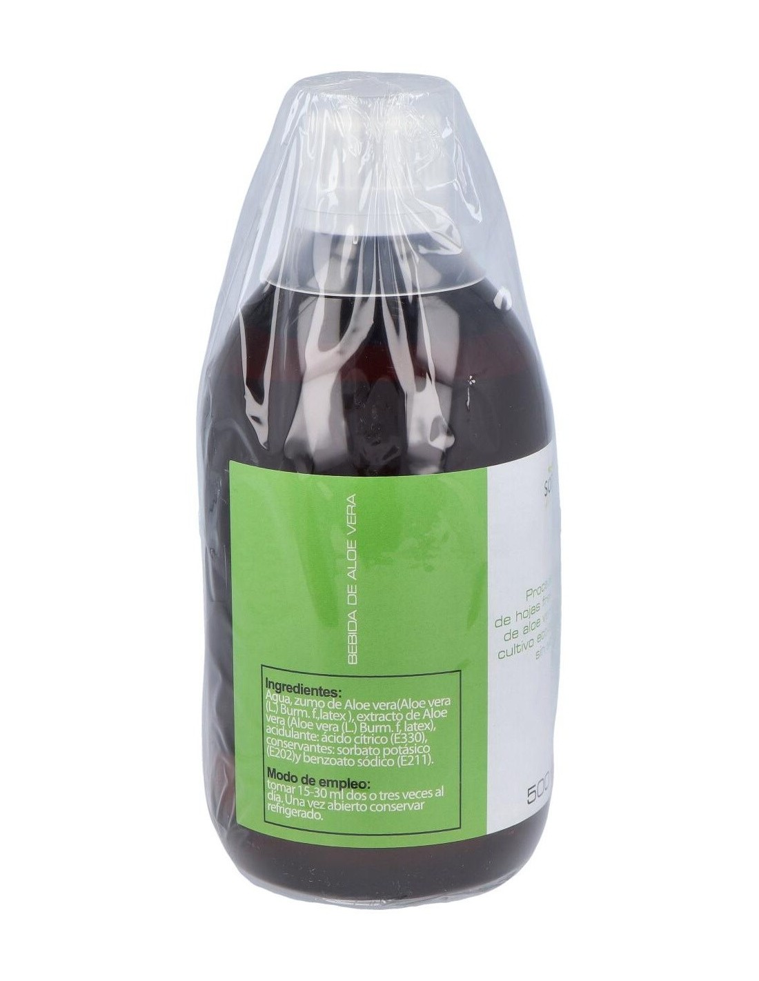 Jugo de aloe vera de cultivo ecológico, ácido cítrico, sorbato potásico y benzoato.