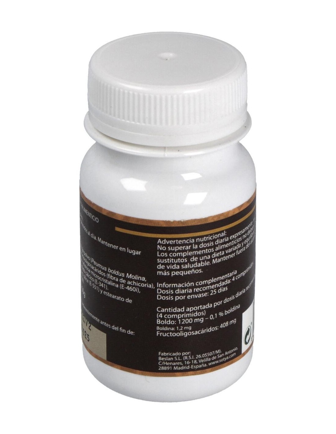 Comprimidos de 500mg, con 500mg de boldo (Peumus boldus) en una combinación de extracto estandarizado en polvo y hoja pulverizada. Maltodextrina y celulosa microcristalina como excipientes.