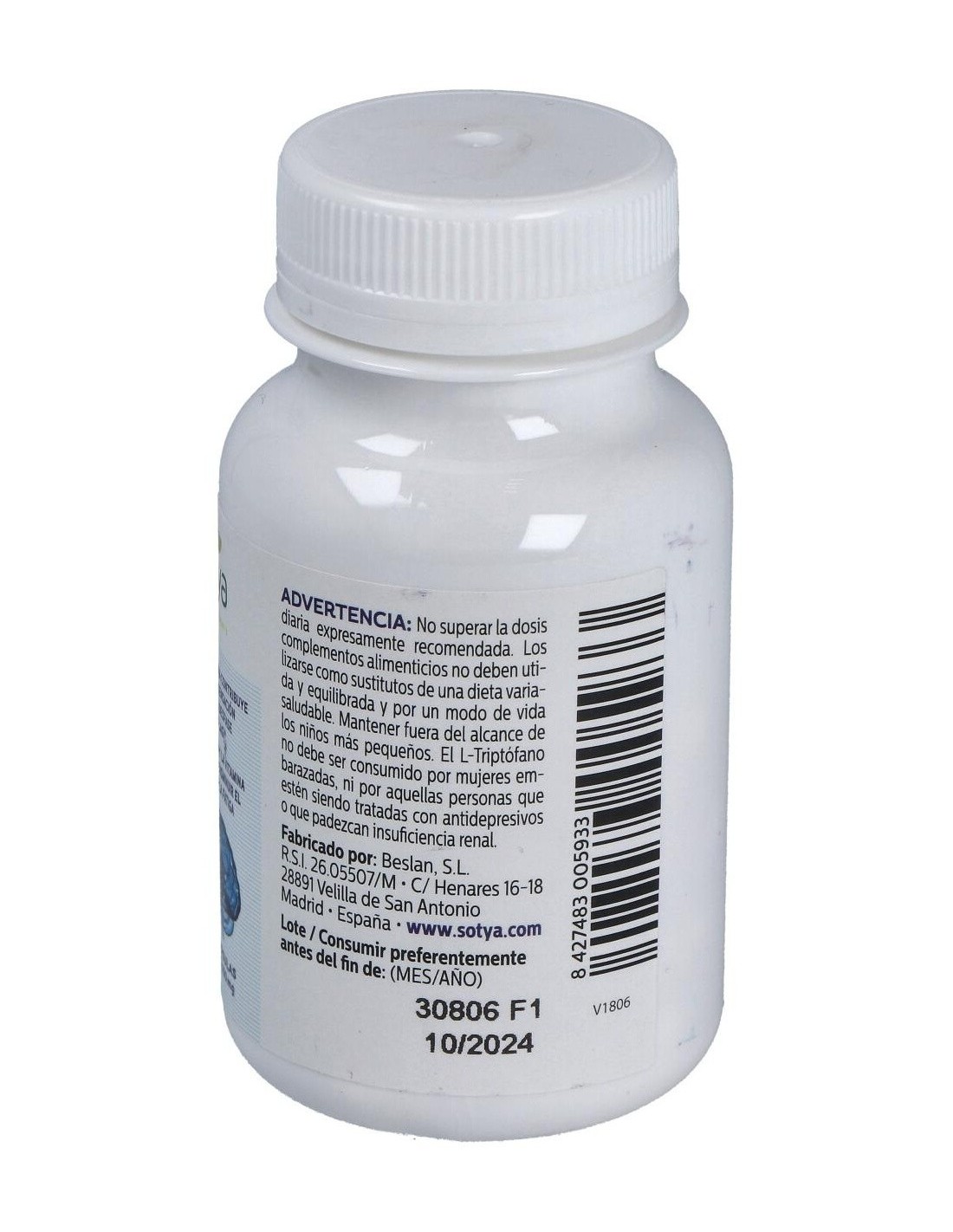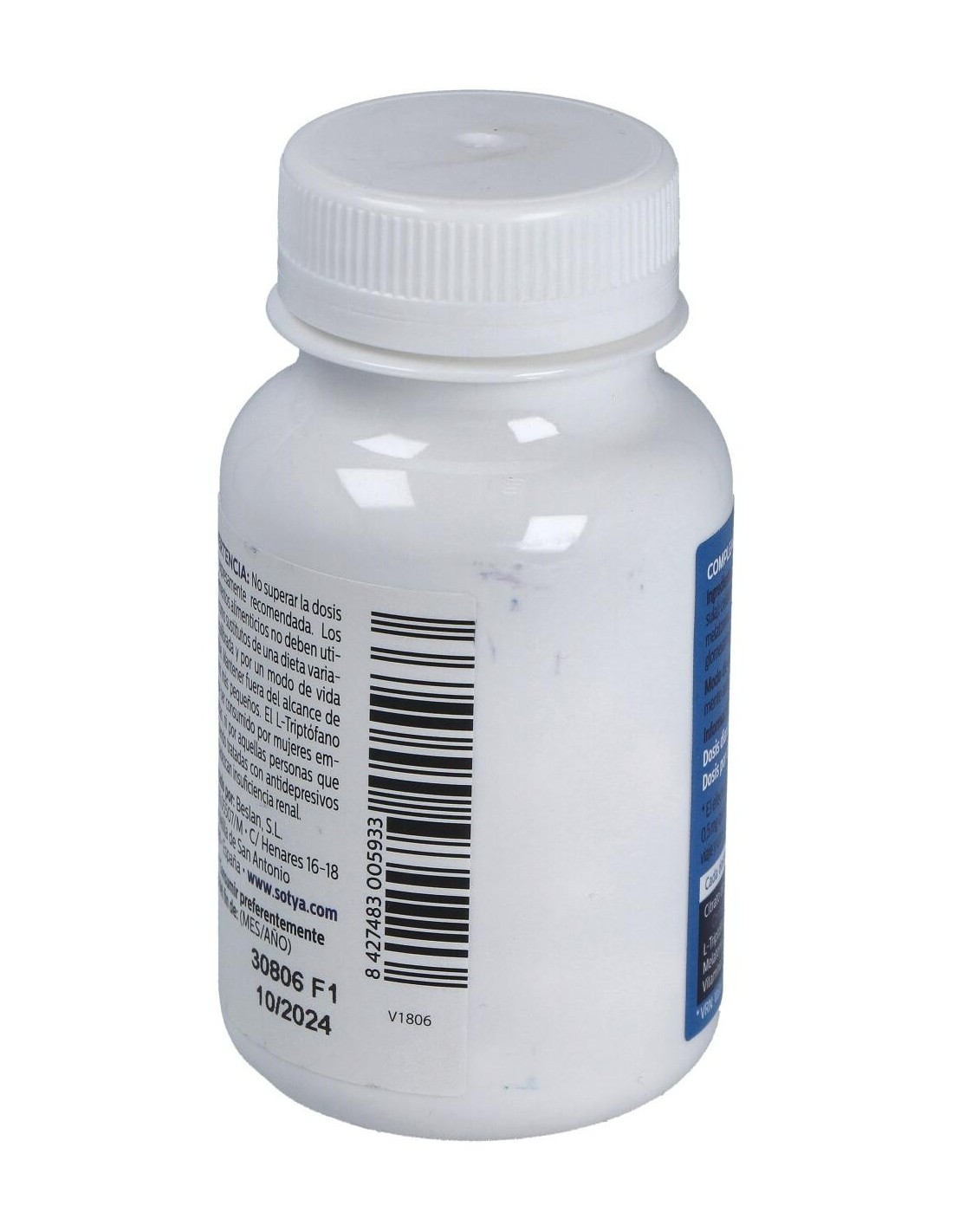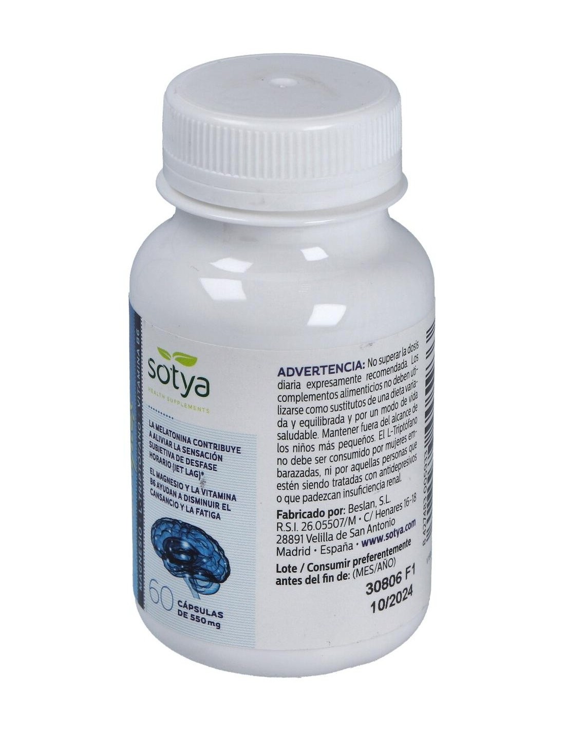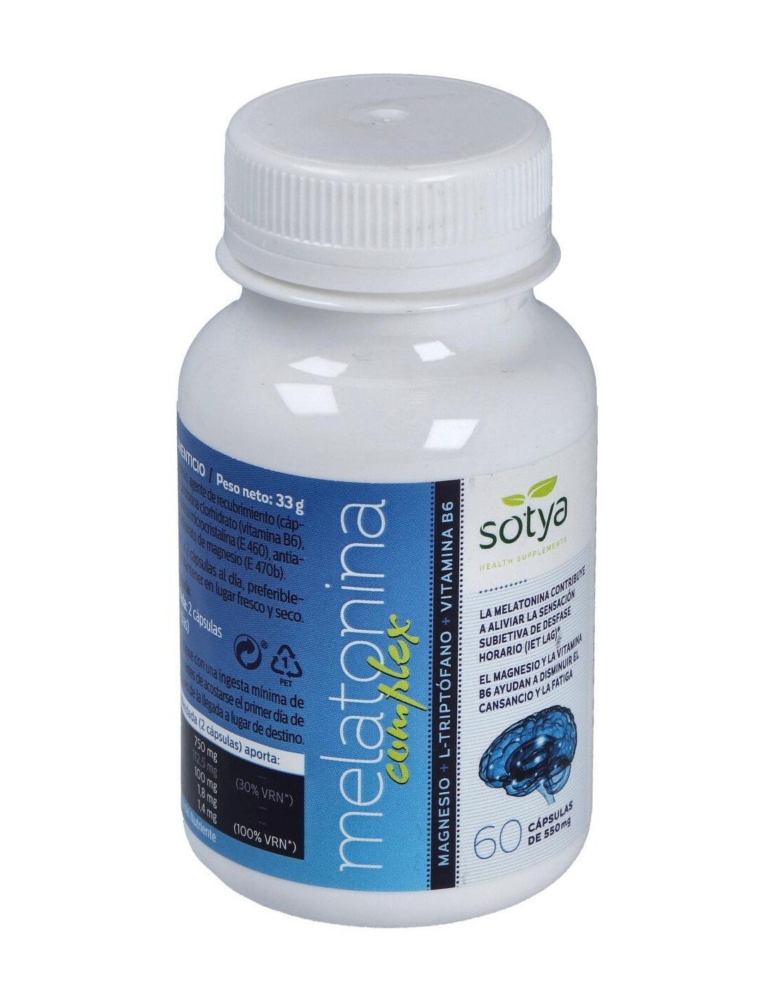 Por 2 cápsulas (dosis diaria recomendada): Citrato de Magnesio (750 mg), L-Triptofano / Triptófano / Trp (100 mg), Melatonina (1.8 mg), Vitamina B6 (1.4 mg).