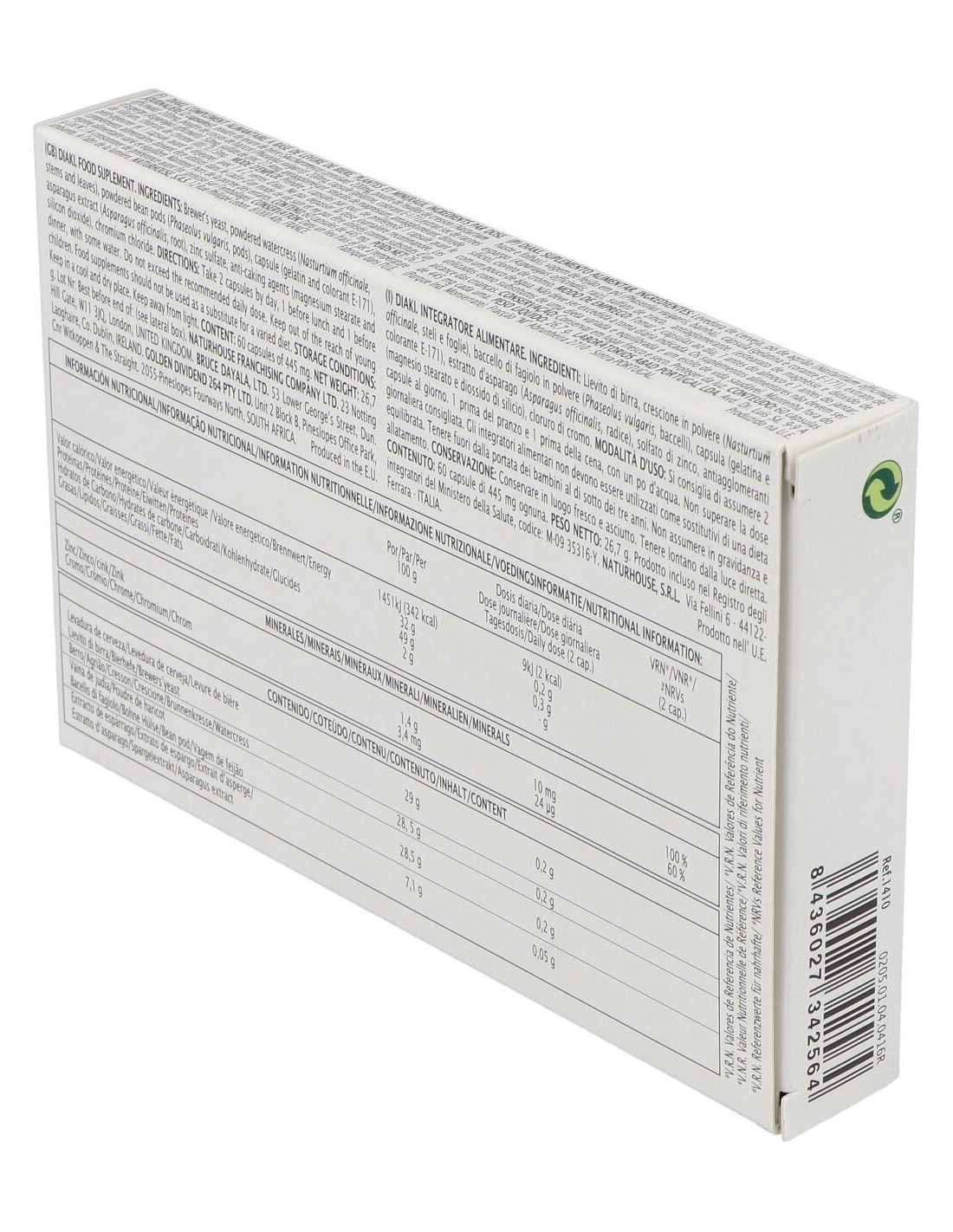 Complemento alimenticio que por su equilibrada composición, rica en cromo y zinc orgánicos, contribuye a regular el nivel de glucemia y de colesterolemia.