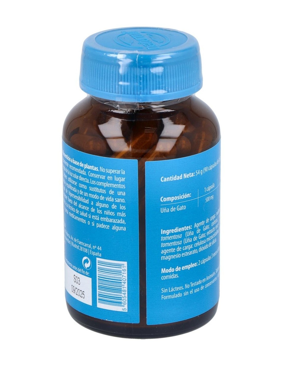 Uncaria tomentosa (Uña de Gato: corteza), gelatina, agente de carga: maltodextrina 19, Uncaria tomentosa (Uña de Gato: extracto seco 4:1 de la corteza), antiaglomerantes: estearato de magnesio: dióxido de silicio.
