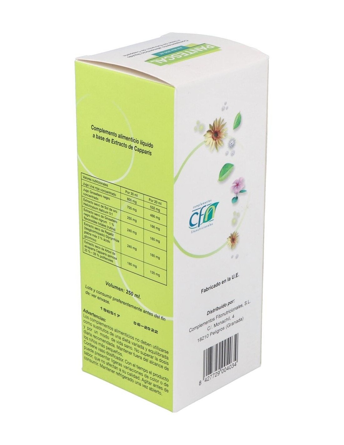 400mg Jugo de Uva roja concentrado, 350mg Jugo de Grosellero negro concentrado, 125mg Extracto seco de Sol de oro Helichrysum italicum 5:1, 120mg Extracto seco de Grosellero negro Ribes nigrum 1% flavonoides totales (rutina), 120mg Extracto seco de Regaliz (desglicirrinizado) Glycyrrhiza glabra máx, 2% ácido glicirrínico, 90mg Extracto seco de Árbol de alcaparra Capparis spinosa 23-28% polifenoles.