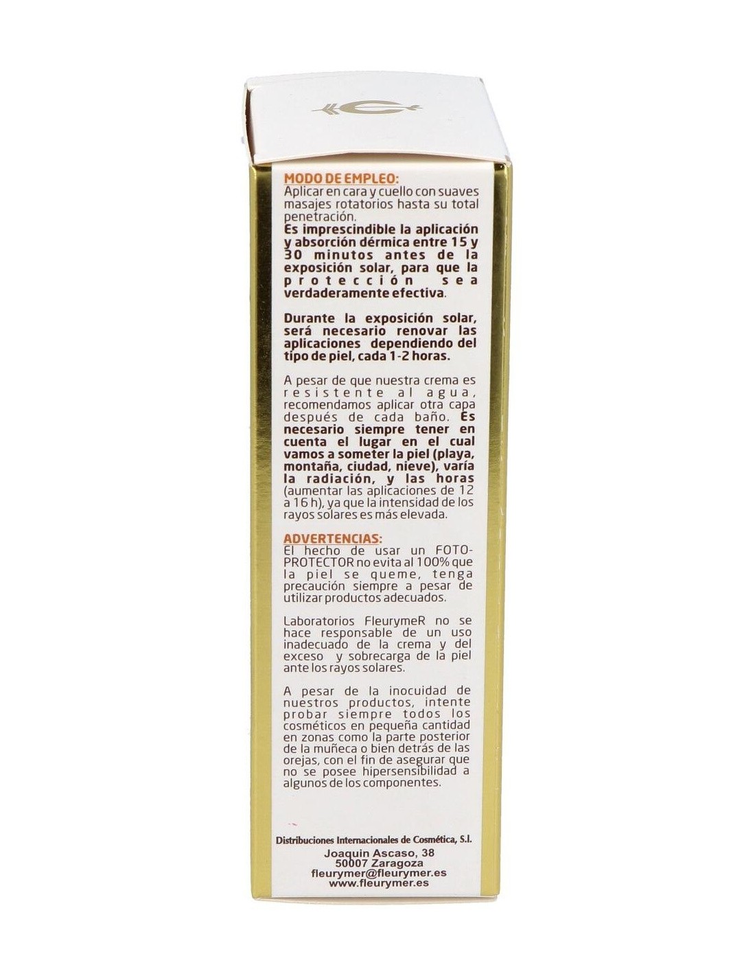 Fleurymer Crema Solar Facial SPF50 80ml es una cema solar para rostro de muy alta protección solar SPF50 y con protección de rayos solares U.V.A., U.V.B., U.V.C. e Infrarrojos.