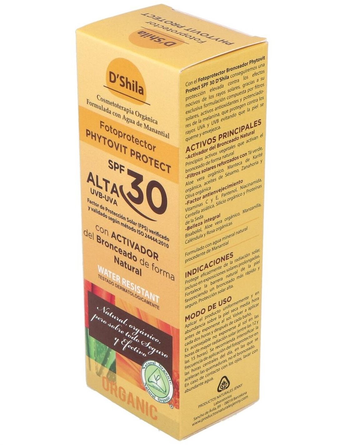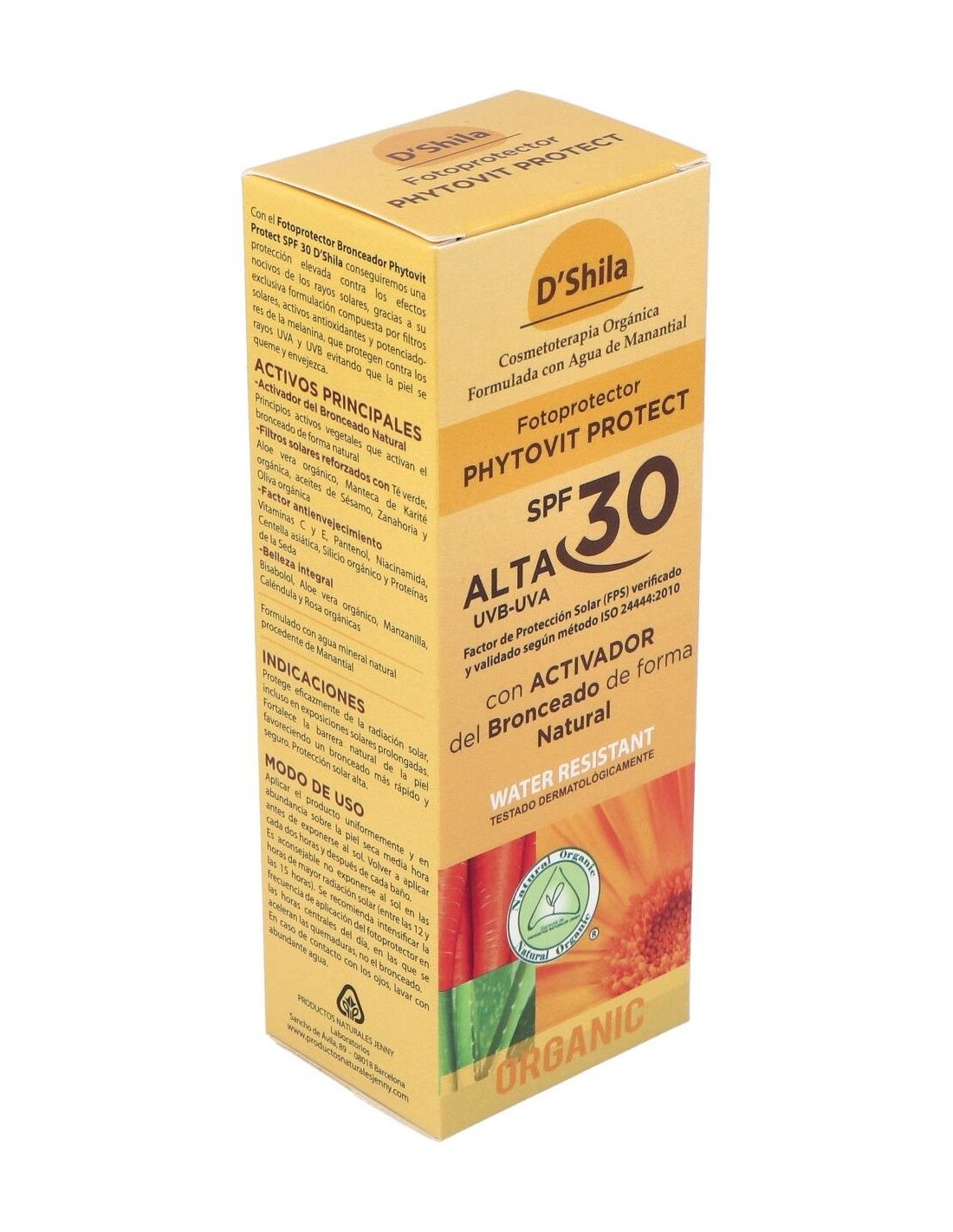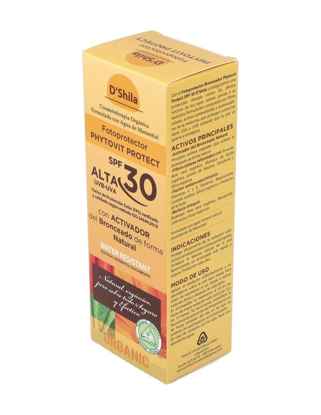 Crema con protección solar, aceleradora del bronceado gracias a sus agentes naturales de cultivo orgánico. Protege del espectro de los rayos solares con un factor alto, con lo cual es apta para personas con la piel clara, pero que empiezan a broncearse. Contiene agua del Montseny, rica en minerales y oligoelementos. Su fórmula contiene principios activos antioxidantes y potencian la melanina.