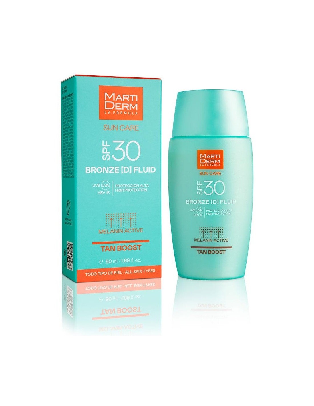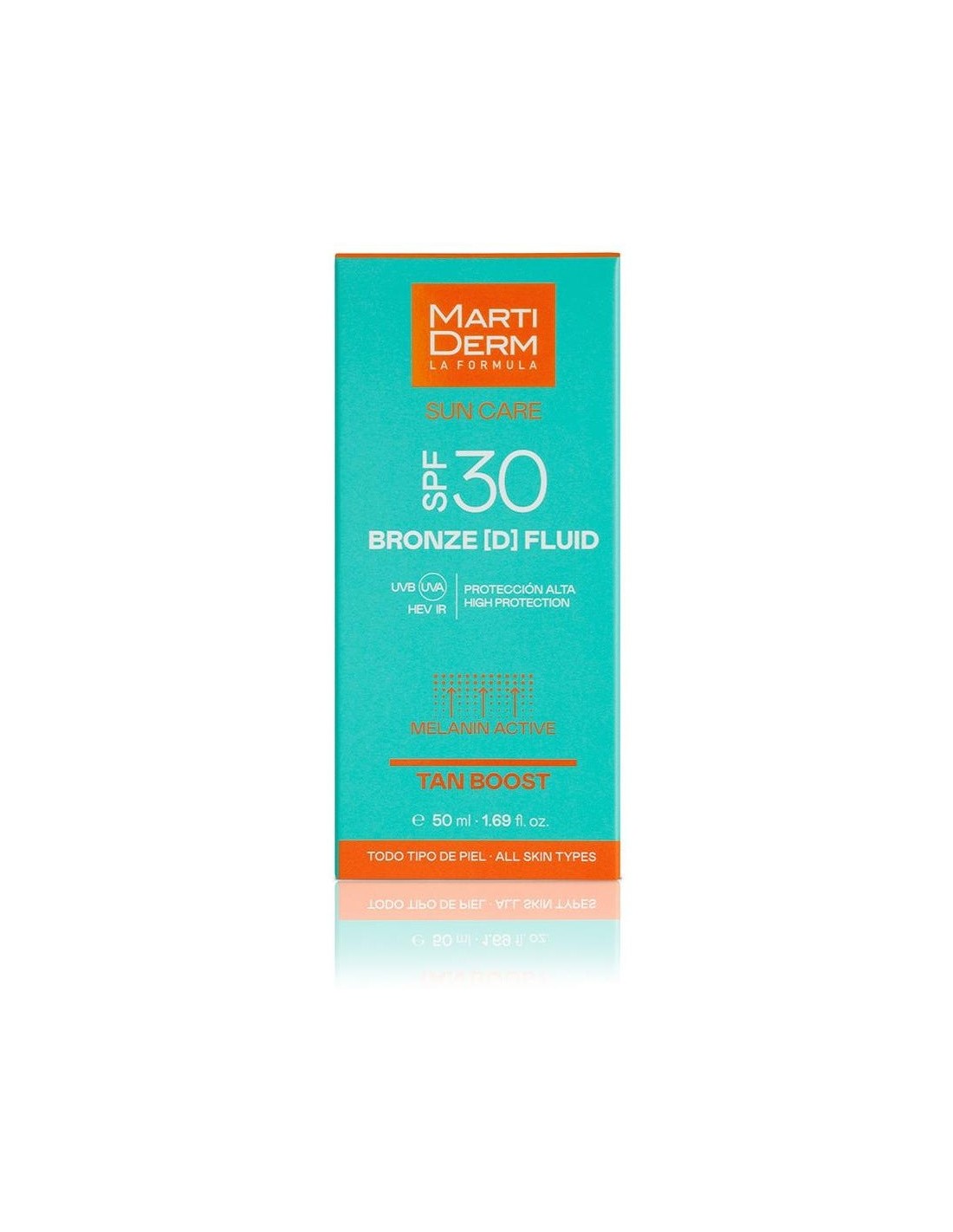 Martiderm Sun Care Bronze D Fluid Tan Boost SPF30 50ml es protector solar facial fluido que, gracias a su filtro SPF30, contribuye a proteger la piel de las radiaciones UVA, UVB, HEV e IR.