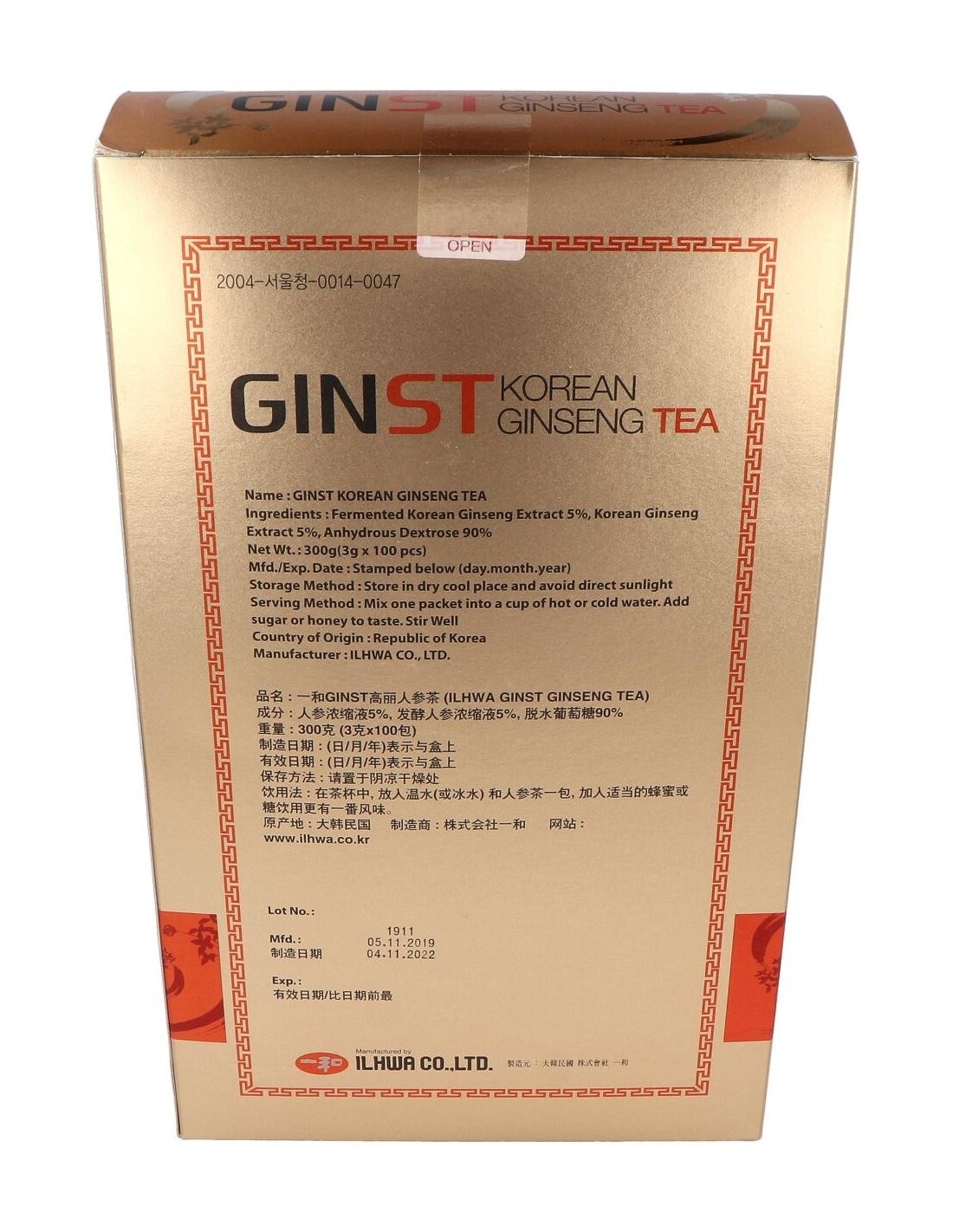 Korean Ginseng Tea Il Hwa (Ginst15) 100Sbrs. de Tongil