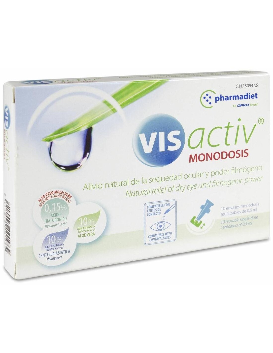 Solución estéril hipoosmolar de uso oftálmico, con pH fisiológico, que combate la sequedad ocular debida a causas fisiológicas: menopausia, envejecimiento y agentes externos como uso de lentillas, exposición a ambientes muy secos, etc. así como ayuda en caso de pequeñas lesiones producidas por cuerpos extraños como arena, polvo o el uso de lentes de contacto. También trata los síntomas oculares producidos por el contacto con alérgenos.