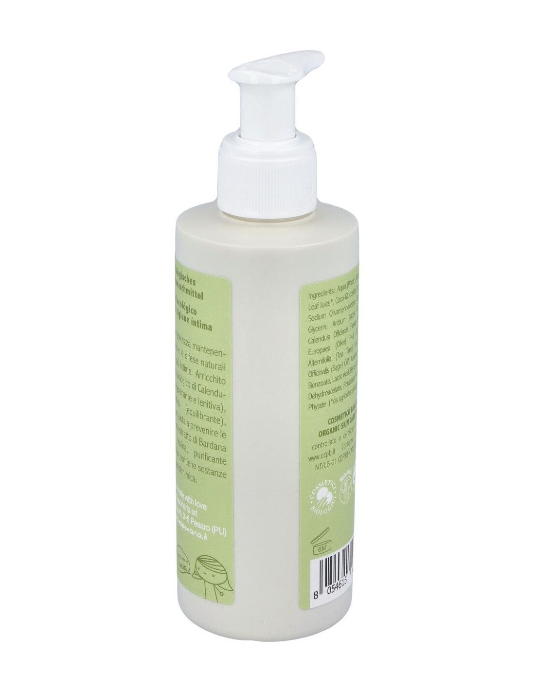 Limpia suavemente manteniendo el equilibrio y las defensas naturales de las partes más íntimas. Enriquecido con extracto de Caléndula (acción calmante), Ácido Láctico (equilibrante), Jugo de Aloe (ayuda a prevenir la irritación) y Bardana (rica en inulina, antibacteriano natural). No contiene sustancias de origen petroquímico, siliconas y perfumes sintéticos. Producto vegano.