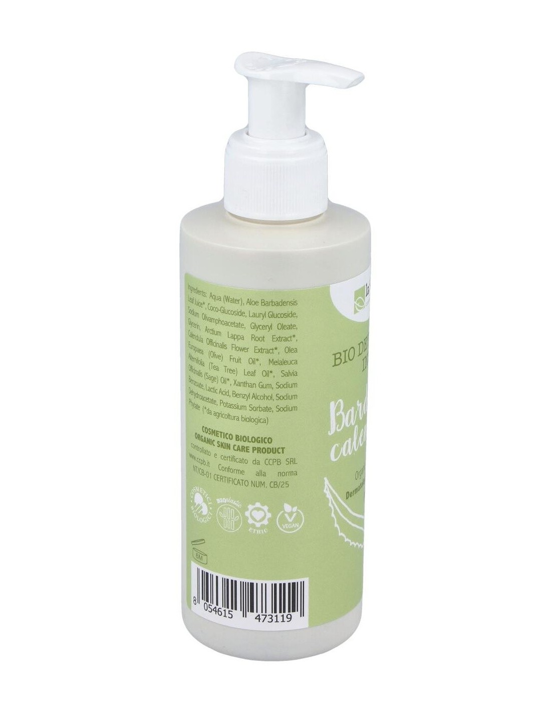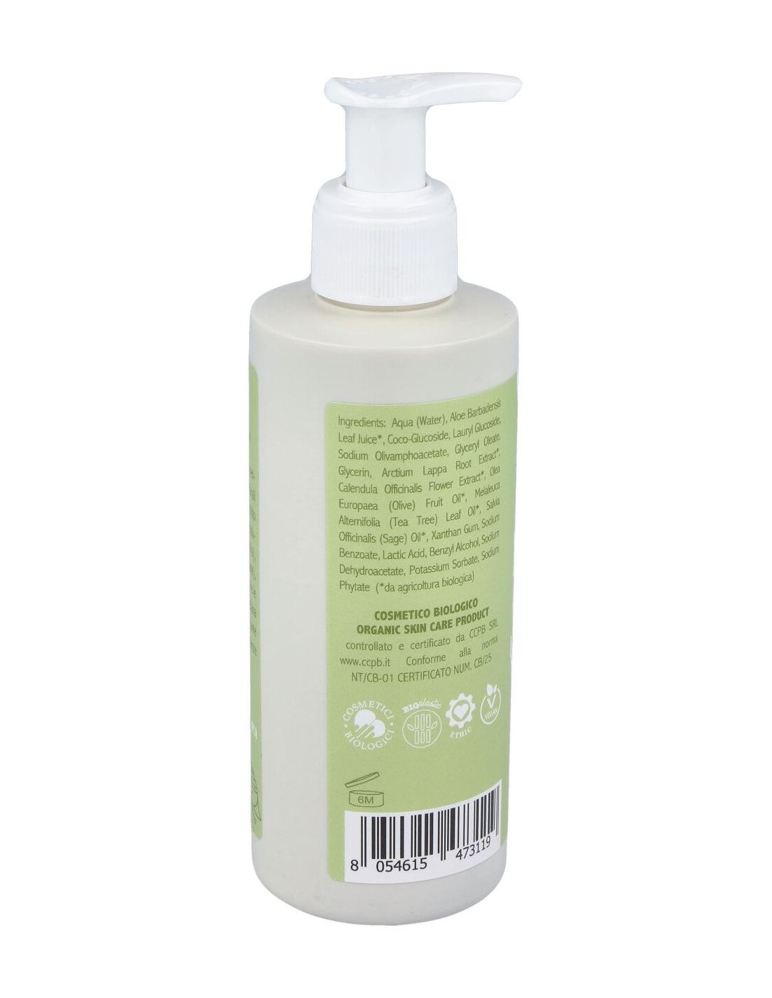 Aqua, Aloe Barbadensis Leaf Juice*, Coco-Glucoside, Lauryl Glucoside, Sodium Olivamphoacetate, Glyceryl Oleate, Glycerin, Arctium Lappa Root Extract*, Calendula Officinalis Flower Extract*, Olea Europaea Fruit Oil*, Melaleuca Alternifolia Leaf Oil*, Salvia Officinalis Oil*, Xanthan Gum, Sodium Benzoate, Lactic Acid, Benzyl Alcohol, Sodium Dehydroacetate, Potassium Sorbate, Sodium Phytate.