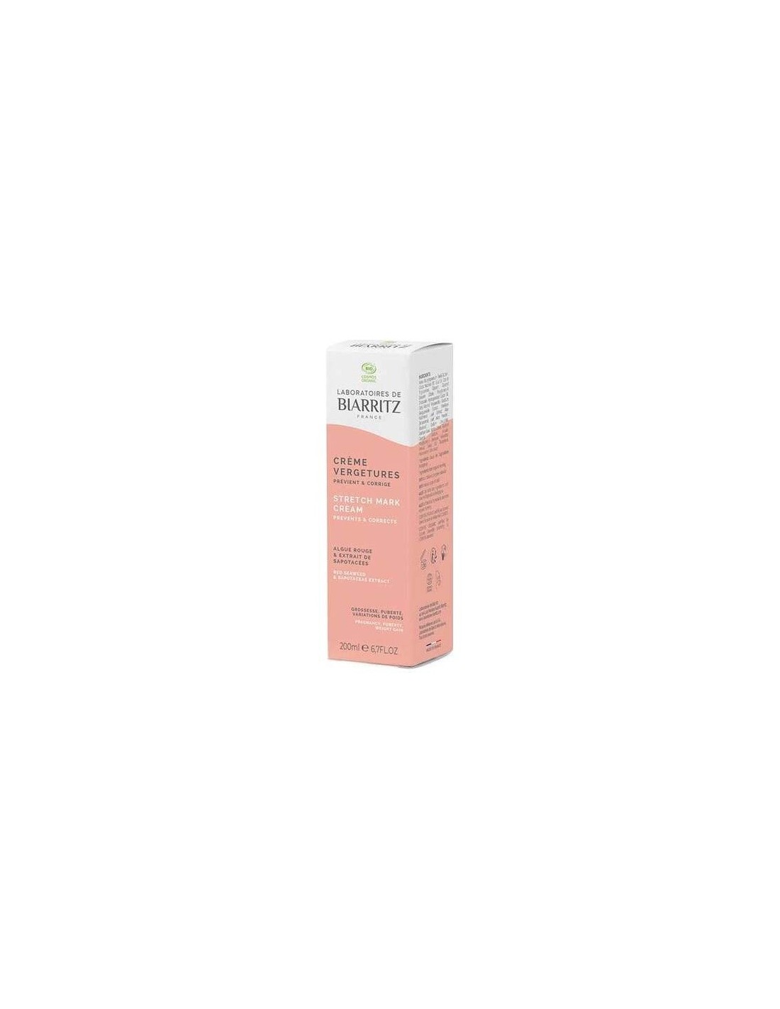 ALGA MARIS - LAB. BIARRITZTratamiento de doble acción: actúa de forma preventiva y correctora. Nutre, suaviza, mejora la elasticidad de la piel. Estimula los mecanismos de reparación de los tejidos que promueven la regresión de las estrías. Elimina la sensación de tirantez y picor. Textura cremosa. Tubo de plástico reciclado y reciclable. Apto para embarazadas y en periodo de lactancia. Sin perfume e hipoalergica. Eficacia probada clínicamente. Ecocert.