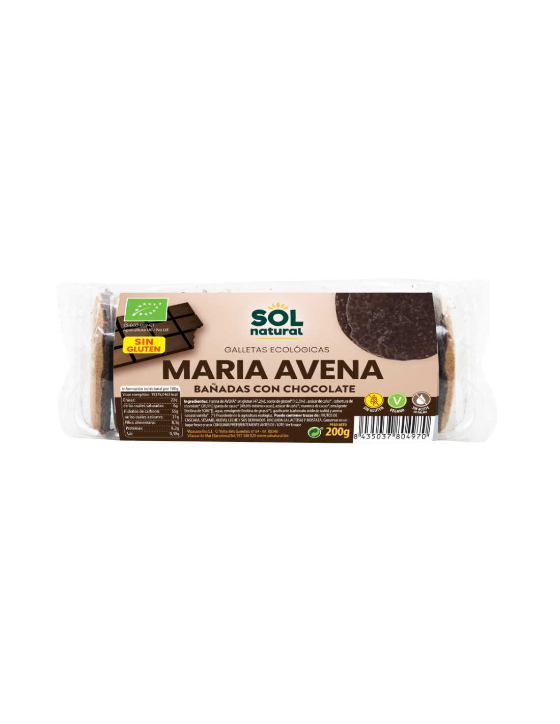 Galletas maría de avena sin gluten bañadas chocolate bio. Alimento vegano.