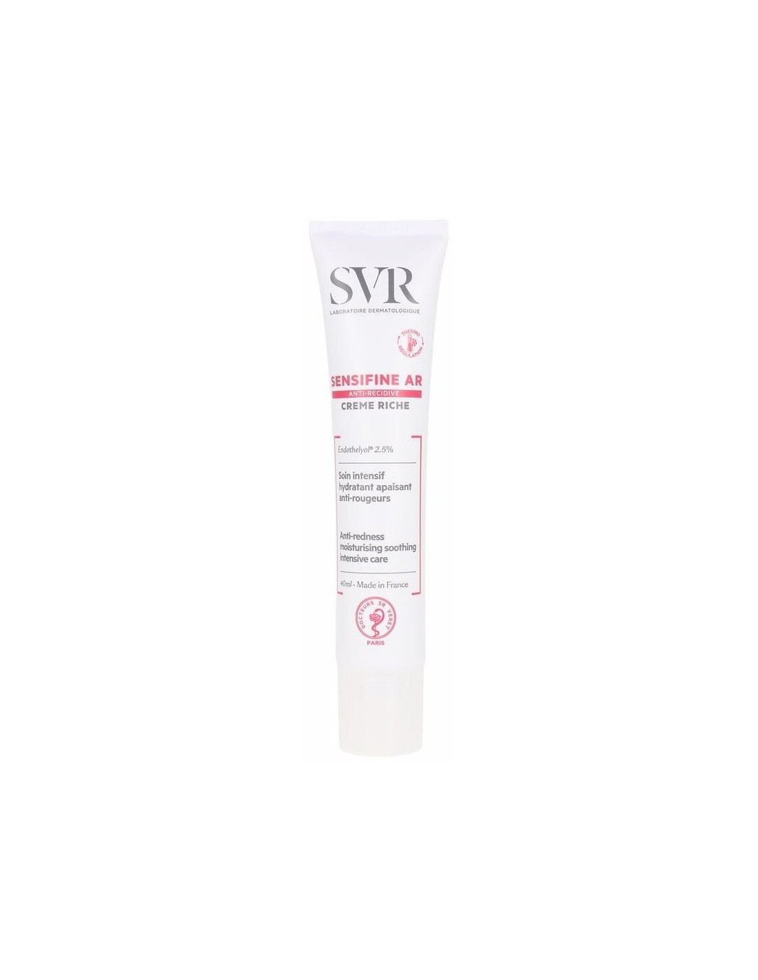 Crema facial con efecto termorregulardor, indicada para pieles secas, propensas a las rojeces y con tendencia cuperósica. Formulada con 2,5% de endothelyol, con acción reguladora de la temperatura, contribuye a reducir irritaciones y rojeces de la piel, mejorar la microcirculación y apariencia de los vasos sanguíneos. Con extracto de regaliz, escualeno vegetal y manteca de karité. Enriquecida con pigmentos verdes que ayudan a difuminar manchas rojas en la piel.