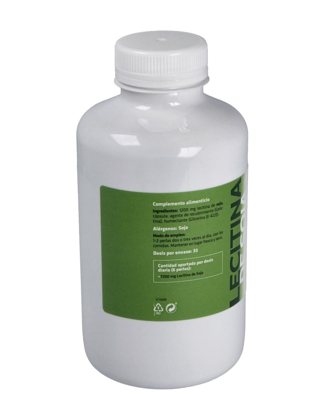 Perlas con 1200mg de aceite de lecitina de soja no GMO, en una cápsula de gelatina y glicerina.