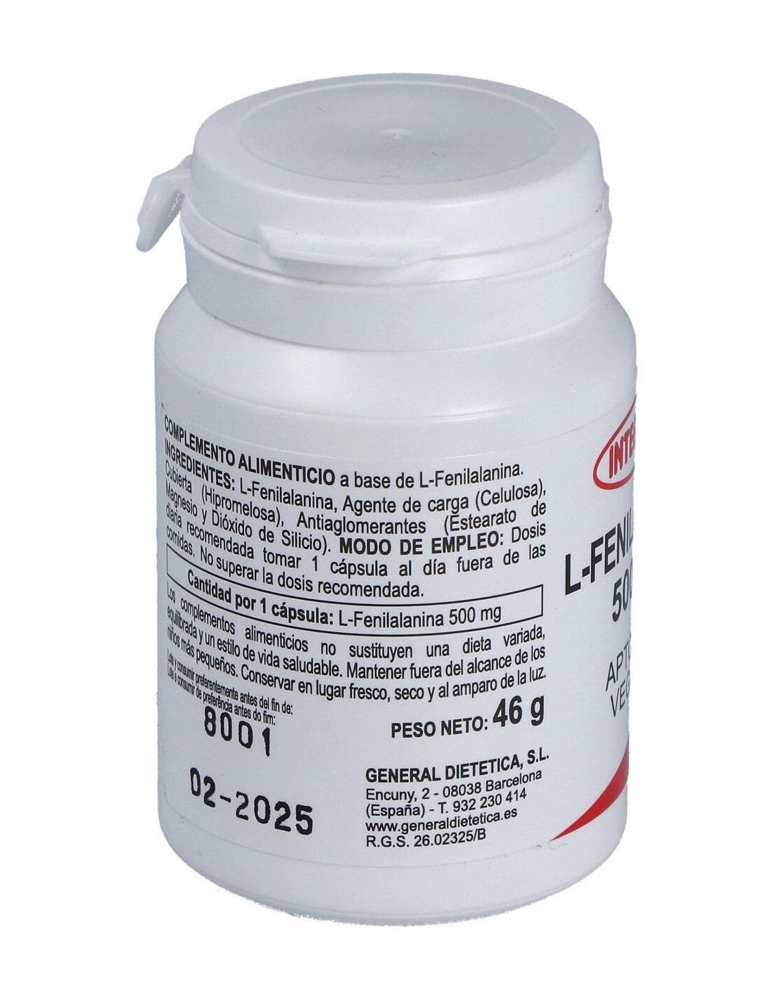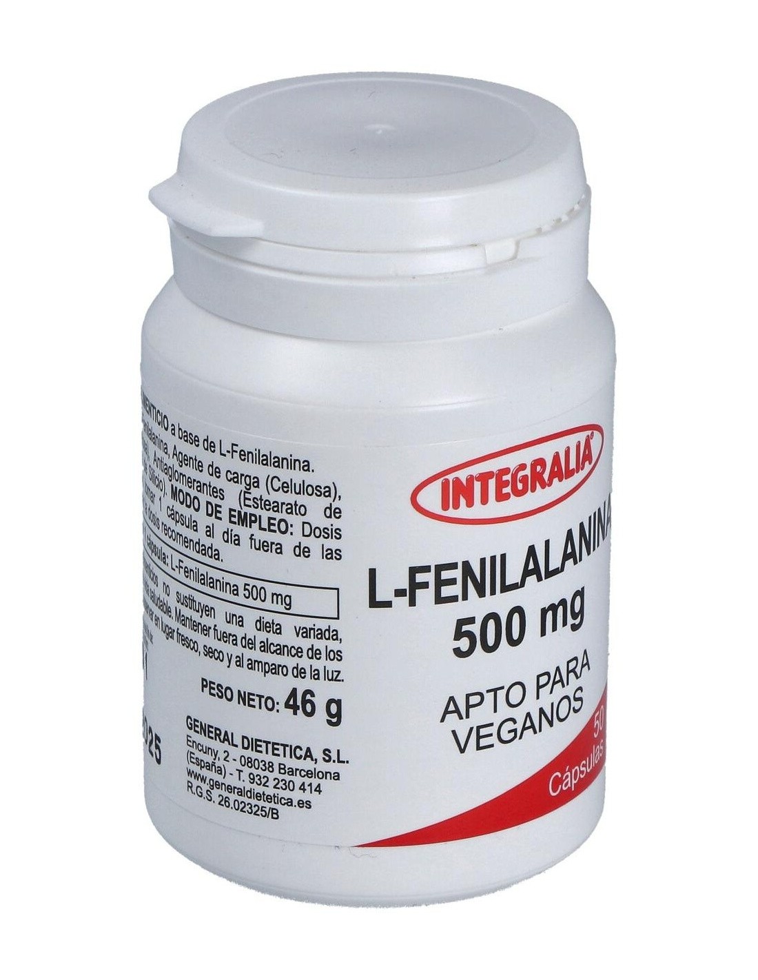 Complemento alimenticio basado en L-Fenilalanina que ayuda a mejorar las situaciones de estrés e interviene en la formación de anticuerpos y hormonas. Tiene propiedades relajantes, alivia dolores musculares, ayuda a controlar el apetito y a la agudeza mental. Útil en dietas que carecen de proteínas. Es un aminoácido esencial que interviene en la transmisión de los impulsos nerviosos del cerebro humano y otras partes del sistema nervioso. Actúa como antiinflamatorio y analgésico, ayudando en el dolor de cabeza o dolor corporal.