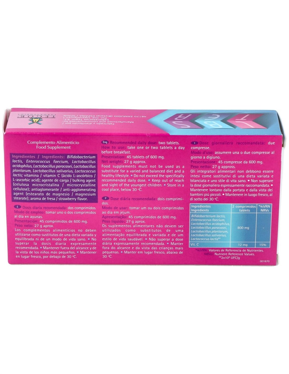 Producto que incorpora bacterias lácticas con un sistema de recubrimiento proteico que las hace resistentes a los jugos gástricos, llegando activas al intestino, donde ayudan a mantener un ambiente sano, favoreciendo así la buena absorción de los nutrientes. Con la mejor esencia de la medicina natural y el máximo rigor científico para conseguir un producto de contrastada eficacia con las mejores materias primas, cuidadosamente seleccionadas y procedentes de diferentes puntos del mundo.