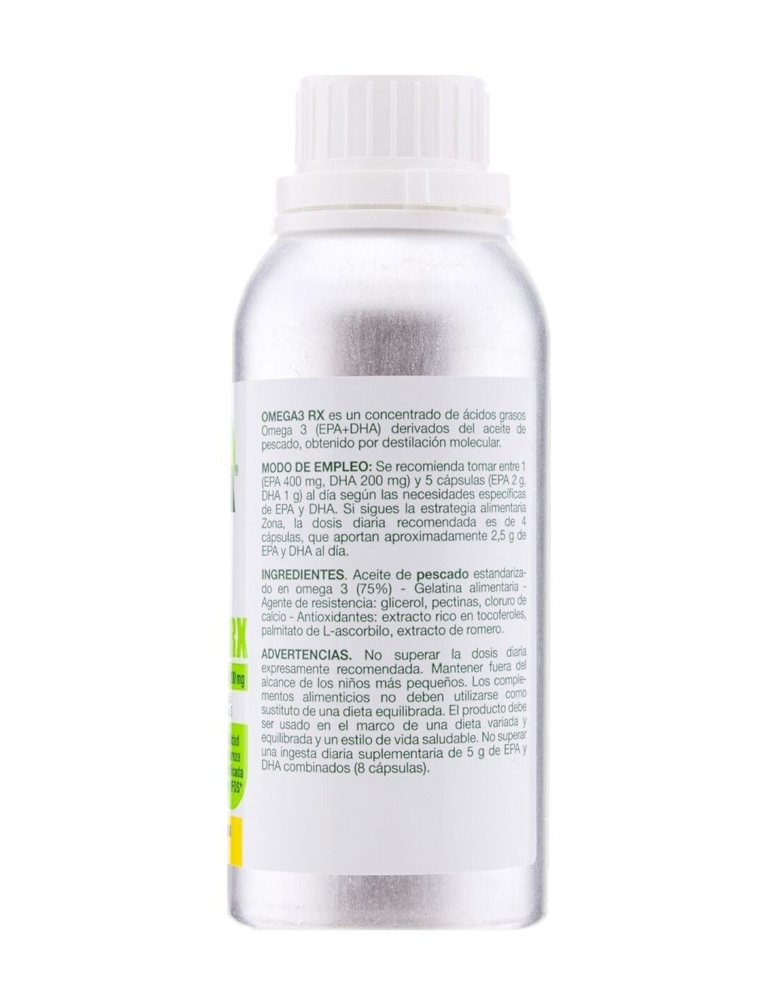 Suplemento dietético de ácidos grasos omega 3. Contiene EPA y DHA en una proporción de 2:1. Certificado por 3 organismos internacionales ( IFOS, ORIVO y Friend of the Sea). Una cápsula patentada sin sabor residual. EnerZona Omega 3 RX , ayuda a cubrir la necesidad de estos ácidos grasos en caso de ingesta reducida o mayor necesidad. EPA y DHA contribuyen a mantener el funcionamiento normal del corazón, cerebro y visión y a mantener niveles normales de triglicéridos en sangre.