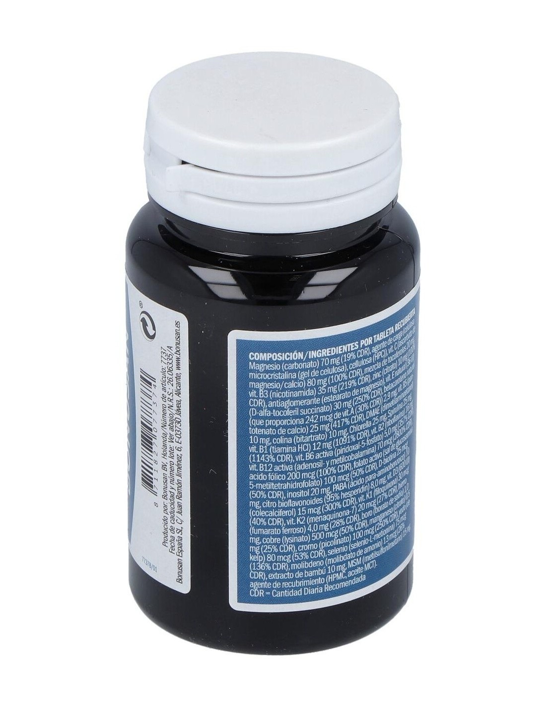 Multivitamínico muy completo con todas las vitaminas y un amplio espectro de minerales para el uso diario. Las vitaminas C, B6, B12 y el ácido fólico están en su forma activa, ofreciendo un extra de biodisponibilidad alto.