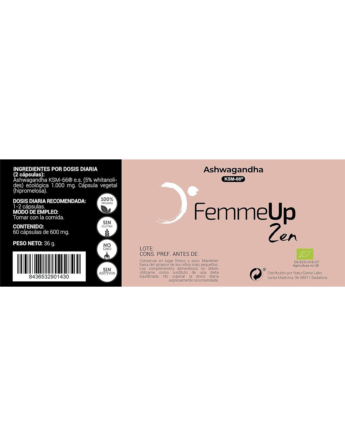 Por 2 cápsulas:\ Ashwagandha KSM-66 e.s. (5% withanólidos) ecológica 1000 mg, cápsula vegetal (hipromelosa).