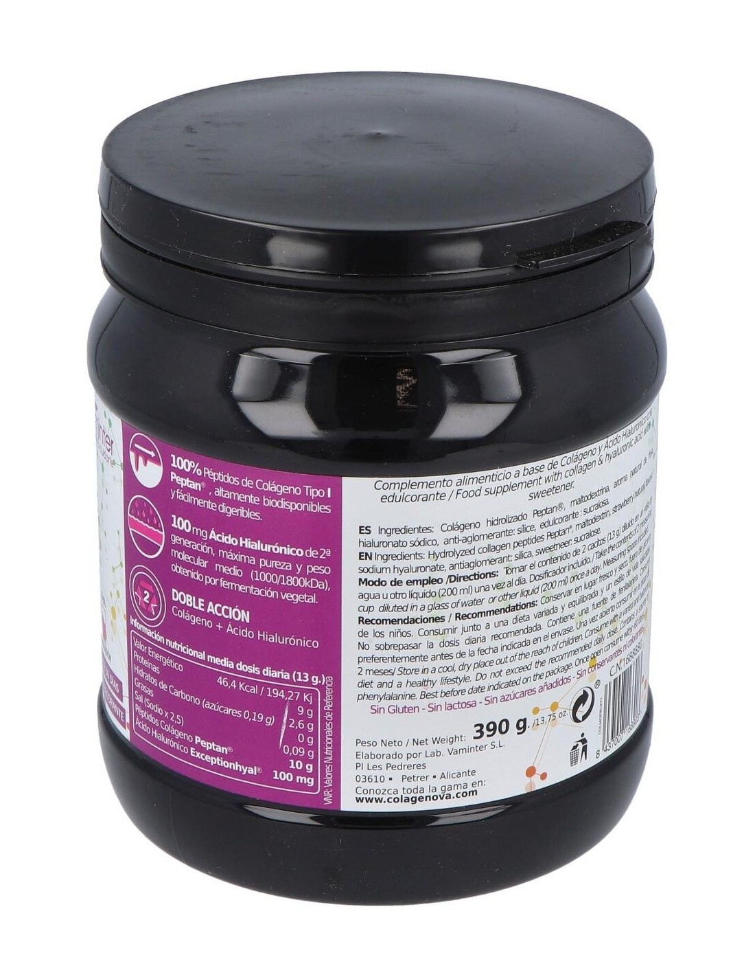 Con un agradable sabor a fresa y en formato polvo, este suplemento ha sido elaborado a partir de un hidrolizado de colágeno purificado altamente biodisponible y ácido hialuronico.